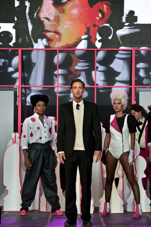 Die Handlung: Schachweltmeisterschaft in Meran: Der arrogante amerikanische Titelverteidiger Frederick Trumper (Marcel Hoffmann) wird vom russischen Schachgenie Anatoly Sergievsky (Markus Schneider) herausgefordert – zu Zeiten des „Kalten Krieges“ eine hochpolitische Angelegenheit.