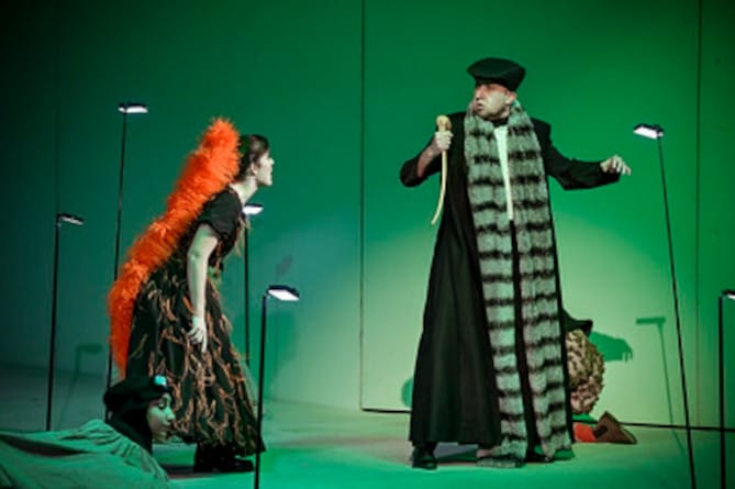 Dennoch herrscht auch auf der Bühne eine Fülle farbenfrohen Lebens mit all den Insekten, Vögeln, Pilzen und Tieren, die jede Inszenierung von Janáčeks Oper und auch diese, abwechselnd zu einem Vergnügen und einem Risiko machen. Galilis choreografische Bewegungsregie sorgt mit einer Menagerie von blauen Libellen getanzt von Leonardo Baghin, Sachiya Takata Hare und Simone Giroletti, die tschechische Mezzo-Sopranistin Šárka Hrbáčková singt den Hund Lapák, der stolze Hahn gesungen von der tschechischen Mezzo-Sopranistin Miroslava Časarová und der grasgrüne junge Frosch interpretiert von dem tschechischen Knaben-Sopranisten Roman Patrick Baroš alle ihre Spuren hinterlassen, für Lacher und Eindringlinge. Es gibt Fuchsjunge und Hühner in Hülle und Fülle, während die „Zeitmesser“ die Szenerie verändern und ständig an die dunkle Seite der Oper erinnern.