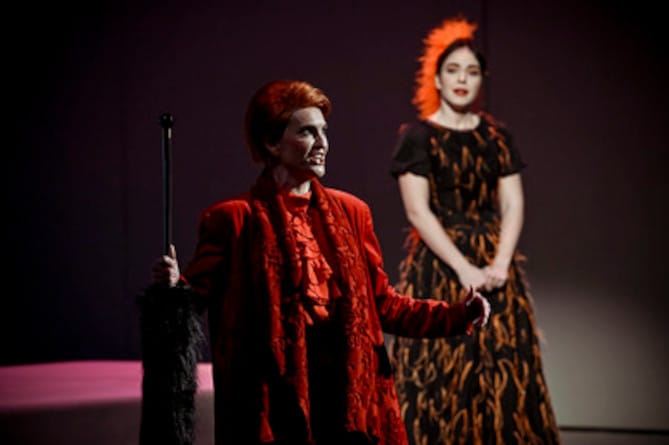 Diese Geschichte war ein Comic, bevor sie eine Oper wurde und die Inszenierung hat eine passende Leichtigkeit und ist frei von jeglicher Selbstgefälligkeit. Der Ton von Dvořáks Design, gleichzeitig hausbacken und stilvoll, ist genau richtig. Das Bühnenbild ist fast leer und es gibt kaum Requisiten außer einer kräftigen Handvoll leuchtender Glühwürmchen in Form von modernem Lampendesign. Das ist jedoch mehr als genug Rahmen für eine Reihe scharf beobachteter Charakterisierungen, angefangen mit den Insekten: Kinder mit dreidimensionalen Kopfbedeckungen aus Karton, die bunte Windschläuche an langen, schlanken Stangen schwenken, die um sie herumzufliegen scheinen.