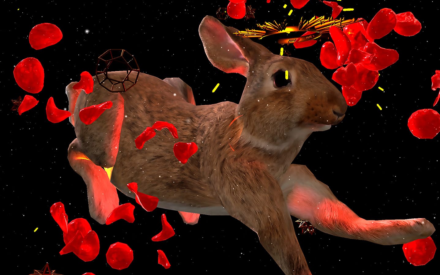 Im zweiten Aufzug fliegt wiederholt ein gezackter Speer durch die Luft, auf dem ein Ohr steckt – erklärt wurde dieses merkwürdige Bild mit einem Wortwitz – Klings-o(h)r… Alienartige simple Avatare bewegen sich durch das Sichtfeld. Halb reale Blumen entstehen und vergehen, seltsame Figuren tauchen auf und verschwinden. Eine Schlange der Sünde windet sich um den Baum, Autos, in denen die seltenen Erden als Akkus verbaut sind, schweben durchs Bild, Totenschädel drehen sich. Es geht immer wieder um den Tod und Todeserfahrung. Ein Fuchs und ein Hase sind sehr dominant. Das Thema der Wunde wird immer wieder aufgegriffen. Im Finale sind es Hände und Füße.