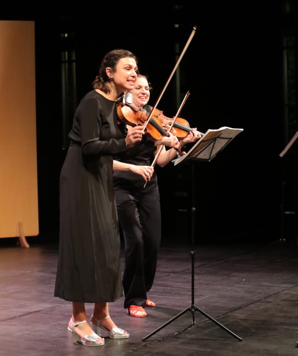 Die beiden sehr bekannten Violinistinnen sind auch Konzertmeisterinnen an einem der großen französischen Orchester: Sarah beim Orchestre National de France und Deborah beim Orchestre de Chambre de Paris. Diese beiden jungen Künstlerinnen sind äußerst talentiert und gastieren als Solistinnen in er ganzen Welt. Aber hier bei diesem Konzert haben sie uns wohl etwas enttäuscht! Am besten sagen wir es gleich vorweg: Es waren die Auszüge aus Bartóks 44 Duos, die uns wirklich faszinierten, denn die polyphone Dichte dieser kurzen Stücke und die Intelligenz des Klangmaterials, das der Kompositeur einsetzt, passen wunderbar für unsere beiden Interpretinnen. Wir hätten uns gewünscht, dass sie bei diesem Korpus blieben und es in seiner Gesamtheit aufführten, anstatt im ersten Teil ihres Konzerts Sonaten für zwei Violinen vorzustellen, die unserer Meinung nach nicht besonders interessant waren: Leclair und Viotti! Ebenso haben sie sich eigenartige Stücke der Klezmer-Musik ausgesucht, die sie am Ende ihres Konzerts mit Talent und Jubel vorgetragen haben, die von einem gewissen Igudesman adaptiert waren. Die uns aber sehr fragwürdig vorkam, da sie den Geist dieser Musik völlig verzerrt haben, indem sie zu etwas Ähnlichen wird wie etwa billige Unterhaltungsmusik oder schwülstige und verrauchte Varieté-Ambiente… Aber natürlich war es die gemeinsame Anwesenheit der Nemtanu-Schwestern, die mit ihrer offensichtlichen Komplizenschaft, dem gewaltigen Charme und der feurigen Brillanz, mit der sie abwechselnd diese Werke präsentierten: Das war für ein sichtlich erobertes Publikum bestimmt, all das ist natürlich ein großer Erfolg!