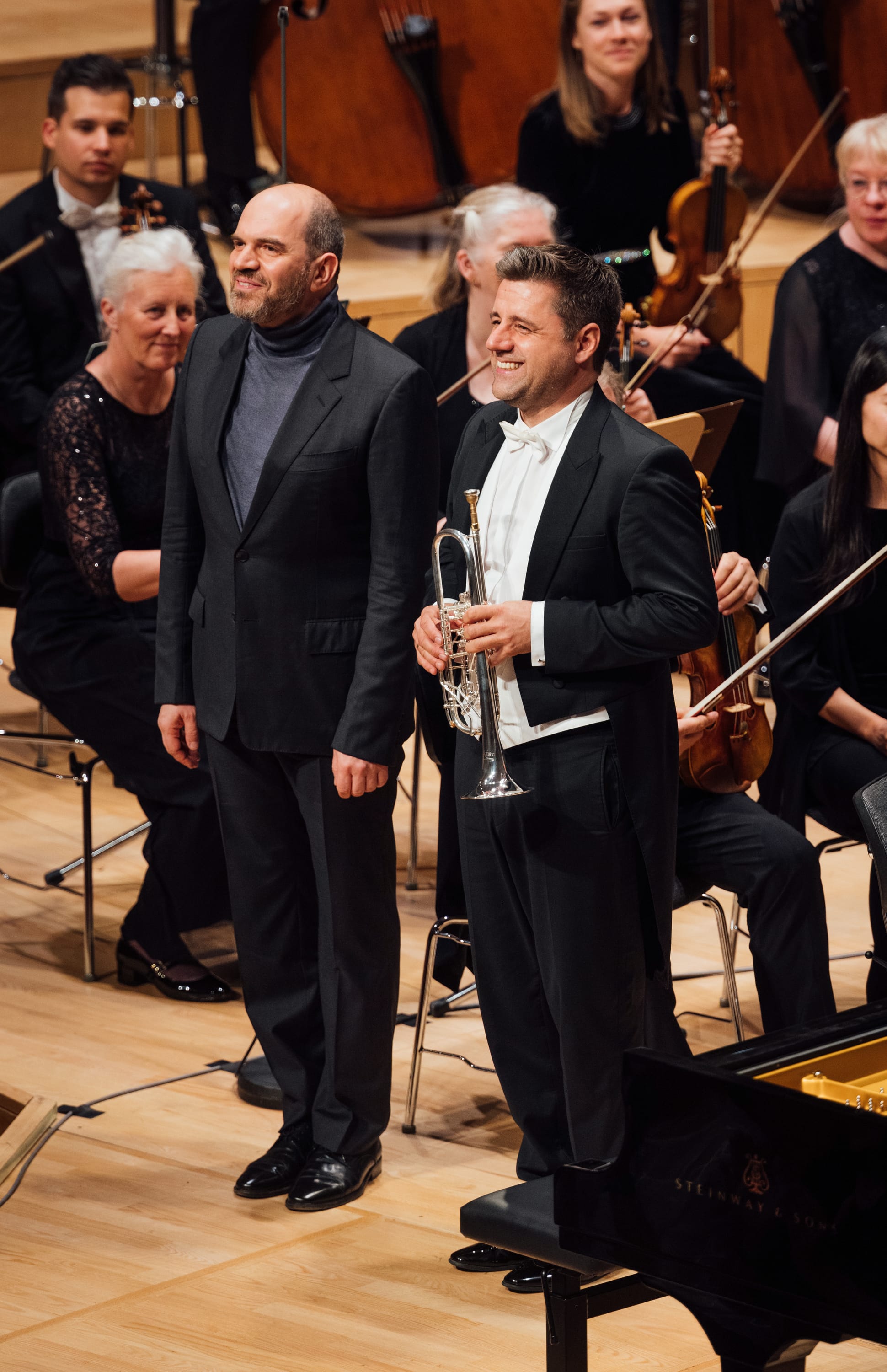 Diesem effektvollen Beginn folgten die beiden Klavierkonzerte Schostakowitschs mit dem Pianisten Kirill Gerstein. Im Jahre 1979 im russischen Woronesh geboren, wurde Kirill Gerstein an der Musikschule seiner Heimatstadt gemäß der vorherrschenden Klavierschule ob seiner Begabung zum Konzertpianisten ausgebildet. Sein Improvisationstalent verschaffte dem zwölfjährigen Gerstein einen Studienplatz am Berklee College of Musik. Die Bostoner Privatschule war eine der wenigen, die eine Ausbildung in Jazz, Rock und anderen zeitgenössigen Musikformen anbot. Nach drei Jahren Jazz-Studium nahm er seine Ausbildung zum klassischen Pianisten wieder auf und gilt inzwischen als einer der wichtigsten Brückenbauer zwischen den Musikformen. Im ersten Klavierkonzert assistierte ihm der Solotrompeter der Staatskapelle Helmut Fuchs.