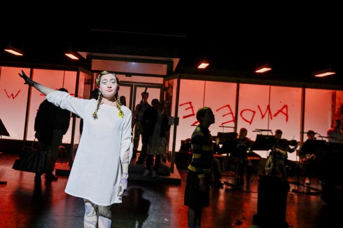 Es wurde ohne Ausnahme hervorragend musiziert. Als „eine Mutter“ überraschte die aus Polen stammende Magdalena Lucjan mit ihrem wunderbar wandlungsfähigen Sopran und ihrem emotionalen Spiel. Beim Wettbewerb der Mohn-Stiftung „Neue Stimmen 2024“ konnte sie den ersten Platz belegen. Die Partien „der trauernden Frau“ hatte die seit der vergangenen Saison im Jungen Ensemble der Semperoper engagierte mexikanische Sopranistin Fernanda Allende mit einer grandiosen Stimme und erstaunlicher Wandlungsfähigkeit auf die Spielfläche gebracht.