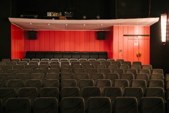 - Diese Übertragung (mit deutschen Untertiteln für die deutschen Kinos) wird in einem Düsseldorfer Kino angesehen, das auf solche Übertagungen spezialisiert ist.