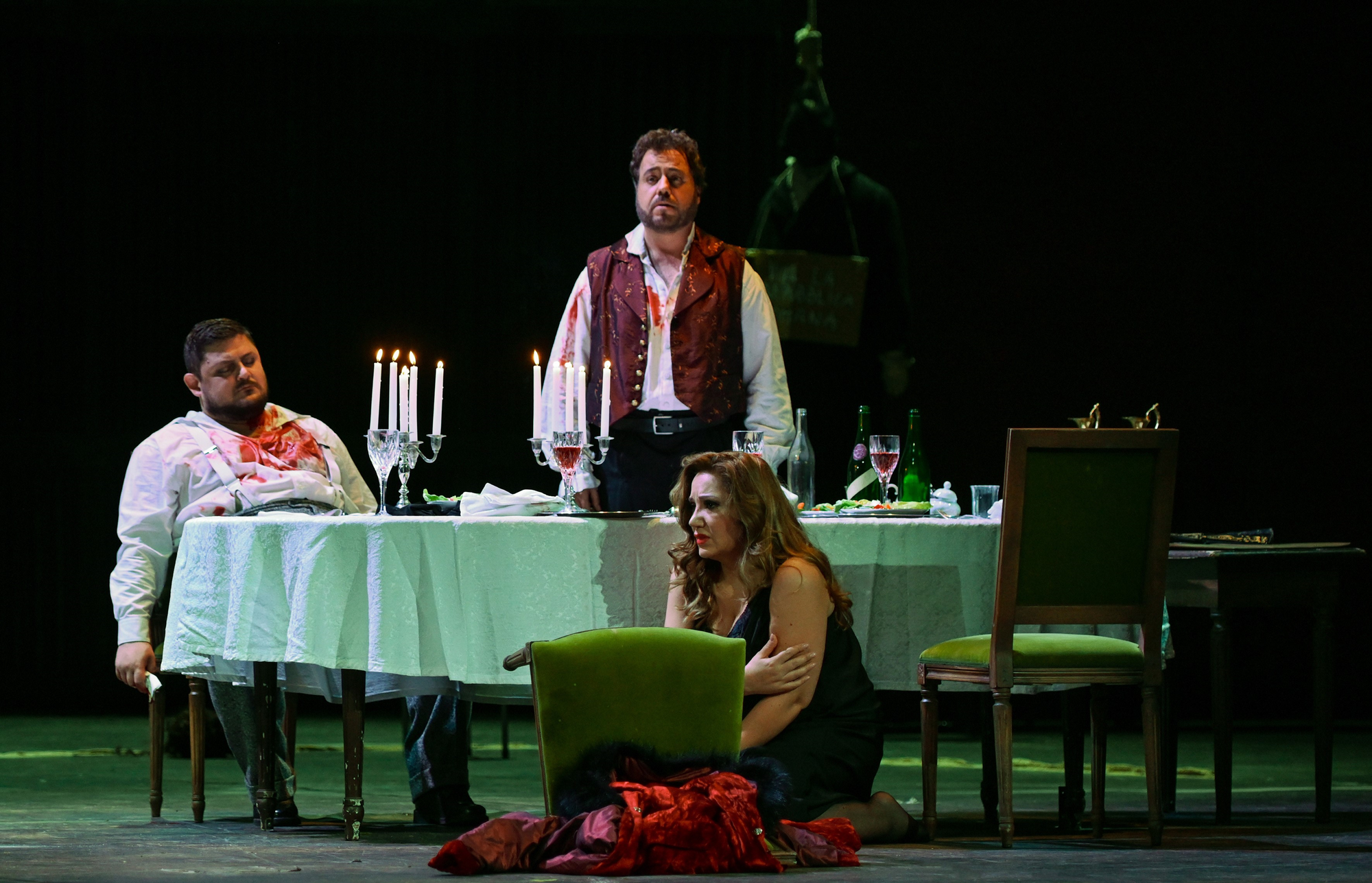 Am Ende der Oper sind sowohl das Liebespaar als auch Scarpia tot, nur die Nebenfiguren überleben. Ein wirklich tödliches Dreieck, musikalisch mitreißend und auf Top-Niveau begleitet von den Düsseldorfer Symphonikern unter der Leitung von Péter Halász.