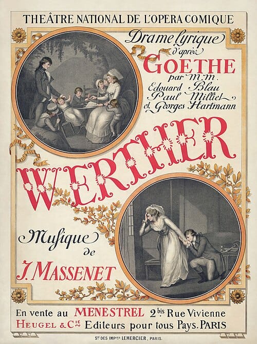 Die Komposition selbst entstand in den Jahren 1885-87; doch man lehnte in der Direktion der Opéra-Comique das „düstere“ Werk ab. Abzuwarten, ob sich die Sachlage und Einschätzung wohl ändern würde, war keine Option, denn noch im gleichen Jahr brannte das Pariser Opernhaus bis auf die Grundmauern ab. Die Wiener Hofoper, damals noch nicht unter Leitung von Gustav Mahler, erklärte indes Interesse, sodass dort in der Übersetzung des Wiener Musikschriftstellers Max Kalbeck der Werther von Massenet 1892 erstmals erklang. Die sehr erfolgreiche Inszenierung und der offene Empfang für Massenets Deutung eines deutschen Stoffes führte zu über 60 Aufführungen alleine bis 1906. Noch im gleichen Jahr 1892 durfte sich Genf glücklich schätzen, die erste französische Aufführung proklamieren zu können. Und 1893 wurde es dann auch etwas mit der Pariser Opernszene im „Salle du Chatelet“, einem Ausweichhaus der Opéra-Comique. Massenets individuellstes, intimstes Werk wurde auch sein nachhaltigster Erfolg.