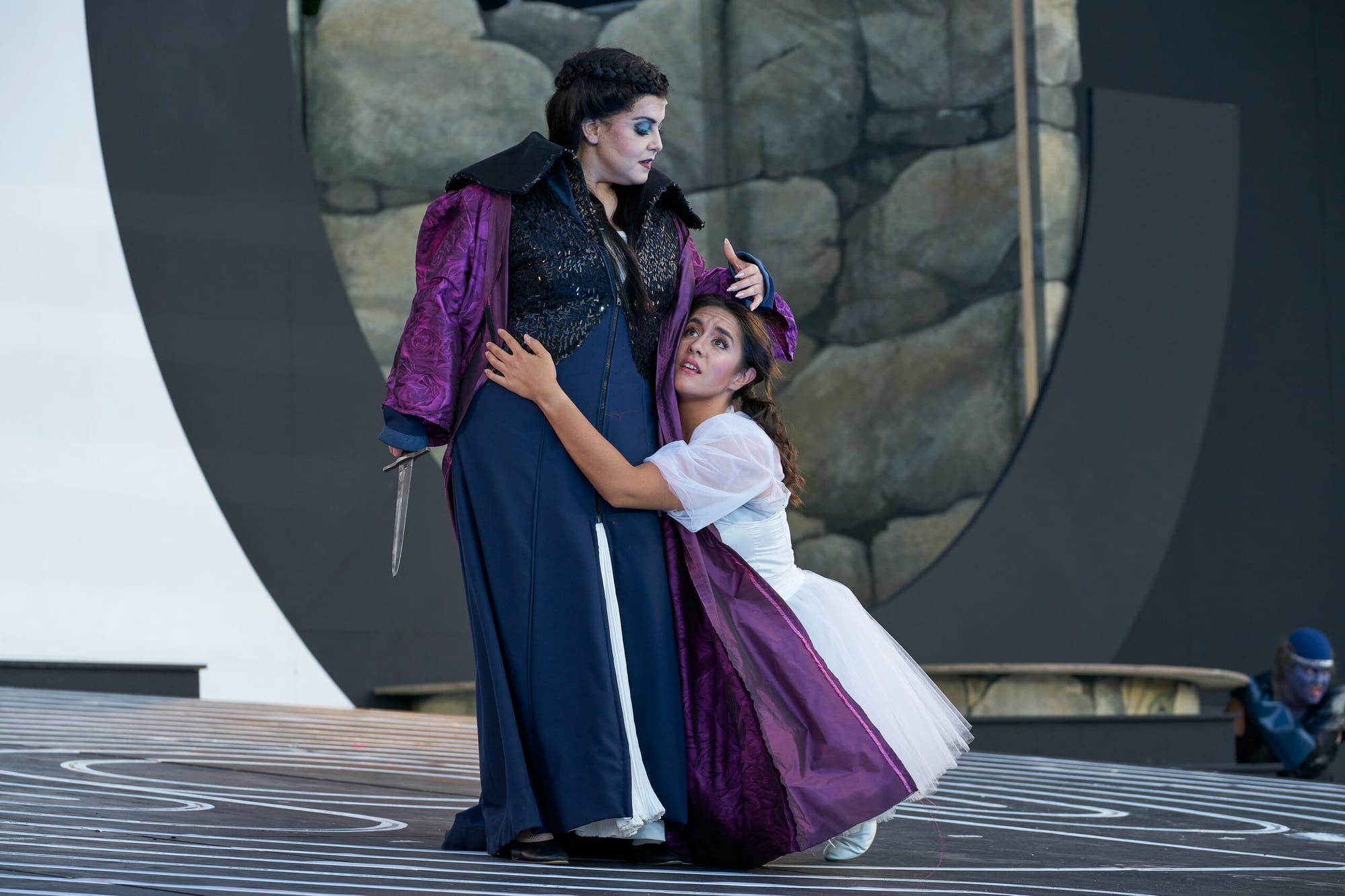 Ganz in dunkelblau kostümiert und auch dunkelblau geschminkt, war Leon Noel Wepner ein spielerisch ausdrucksstarker, wendiger Monostatos mit robustem Charaktertenor, den er wunderbar in seiner Arie „Alles fühlt der Liebe Freuden“ präsentieren konnte.