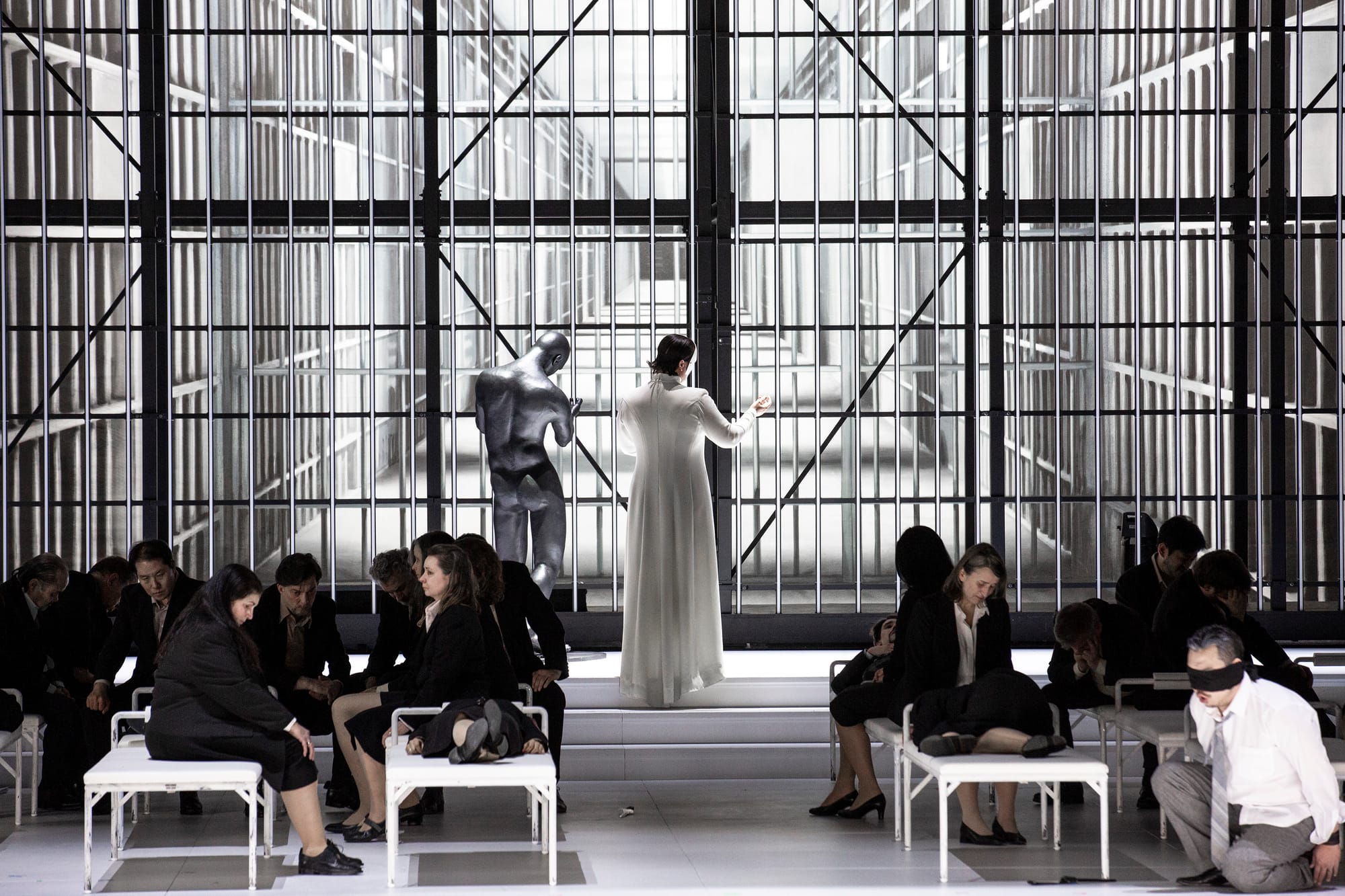 Breth, die erstmals an der Oper Frankfurt inszeniert, stellt Liù in den Mittelpunkt, in dem sie mit ihrem Tod die Oper enden lässt. Dafür gibt es einen von Ronchetti komponierten Prolog „Io Tacero“, den der Chor auf die spätere den Tod Liùs besingende Trauergemeinschaft vorausdeutend im Foyer beginnt und im Zuschauerraum fortsetzt. Ein neukomponiertes Ende wäre vermutlich ein Wagnis gewesen, indes hätte es mit dem neuen Beginn eine Folgerichtigkeit und ebenso Zielgerichtetheit gebildet und womöglich ein neues Licht auf die handelnden Personen werfen können. Zumal Puccini selbst mit dem Ende haderte und nach einem Dénouement für die märchenhaft mythische Geschichte suchte: dramaturgische Plausibilität durch musikalische Beglaubigung. Es hätte zeigen können, welche Modernität das Werk tatsächlich besitzt: Liebesunfähigkeit – bei Breth bis zur Eiseskälte einer Frau und ihrem gnadenlosen Regime geweitet –, weil das eigene innere Gefängnis, aus dem man nicht entkommen kann, keinen Ausgang besitzt. Der Einbruch des Anderen, der Löcher in die realen wie eingebildeten Mauern reißt, aber keinen Weg nach draußen weist, produziert Kollateralschäden – bei der Person, die Gefühle zeigt und sie maßlos ergreifend besingt: Liù.