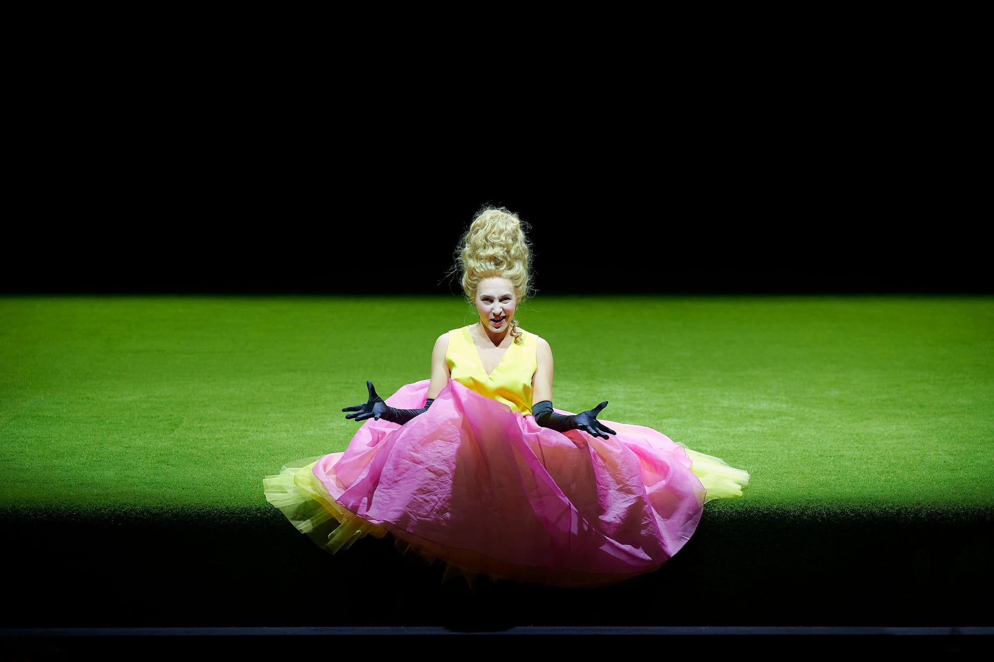 Farbliche Akzente setzen die fantasievollen Kostüme von Katrin Lea Tag, die an die galanten Feste auf den Gemälden von Jean-Antoine Watteau erinnern.