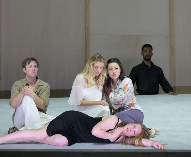 Die Besetzung mit sechs traditionellen Opera-Seria-Protagonisten ist sehr gut gewählt. Alle Sängerinnen und Sänger sind in der Lage, flexibel zwischen stimmlicher Perfektion und dramatischer Wirkung hin und her zu wechseln. Die psychischen Probleme seiner Mutter hat Hyllus (Michael Porter) geerbt, der eigentlich im Schatten der Heldentaten des Hercules aufgewachsen ist, aber ohne Vater, umgeben von Statuen des Helden. Interessanterweise führte Barrie Kosky eine neue Figur in Hercules' Familie ein - seine jüngere Schwester Lichas (Kelsey Lauritano) -, die ihren Bruder unterstützt und einen Teil seines Leidens auf sich nimmt, während Händels Lichas nur die Verkündung eines Außenseiters darstellt.