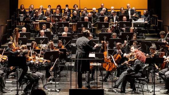Aber zurück zur Premiere im Stadttheater Gießen: der Abend der halb-konzertanten Aufführung war eine Offenbarung für alle Anwesenden. Diese Musik ließ niemandem gleichgültig. Orchester und Chor des Theaters haben auch bei dieser Produktion eine Spitzenleistung gebracht. Die Orchestermusiker unter der Leitung des Generalmusikdirektors Andreas Schüller, beeindrucken zutiefst mit breiter Farbpalette, vielfältigen Nuancen und großer Intensität des Klangs. Der Chor, geleitet von Moritz Laurer, ist musikalisch bestens vorbereitet. Der Chorgesang hat in dieser Oper eine sehr wichtige Rolle.