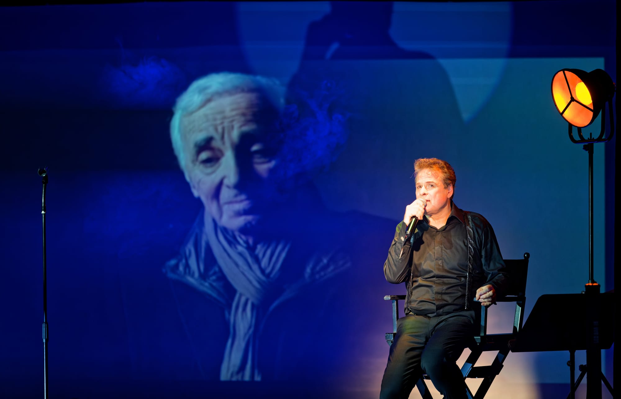Und natürlich mit seiner charmanten Moderation, mit er er über das Leben dieses Ausnahmekünstlers berichtete. Über den Verlauf seiner Karriere, seine Wegbegleiter, seine Mitstreiter, seine Ehen. Über sein erstes Aznavour-Konzert in Nizza, und natürlich ließ er es sich auch nicht nehmen, einige Chanson-Passagen, mit Aznavour im Video auf der Bühnenrückwand, im Duett zu singen. Für einige der Chansons schrieb er neue passende deutsche Texte, so auch für „Comme ils disent“, denn die Zeiten haben sich geändert und nach all den Jahrzehnten sind die gleichgeschlechtlichen Partnerschaften von der Gesellschaft glücklicherweise akzeptiert.