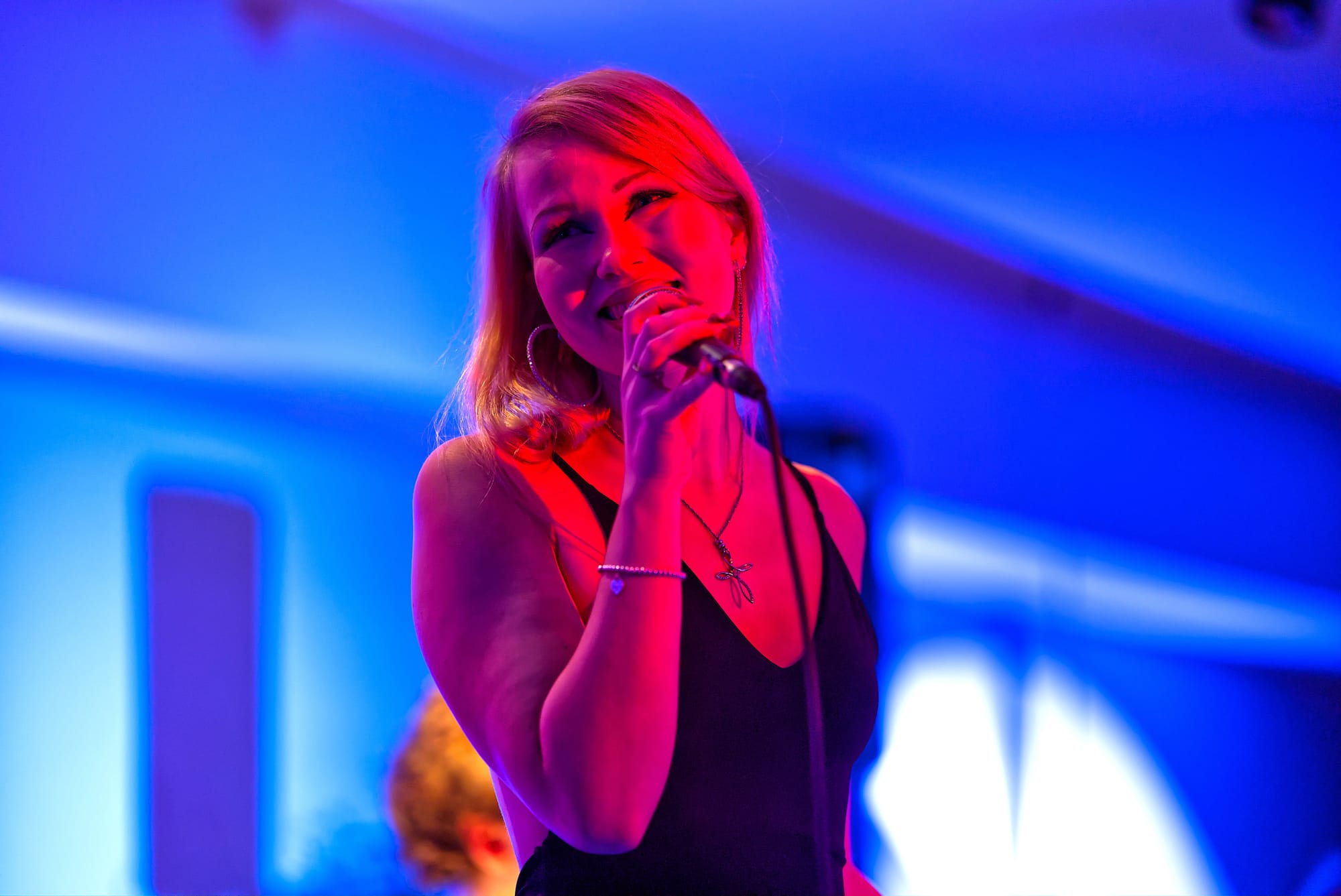 Nach diesen vier Klavierstücken wurde es Zeit für den Auftritt für seinen Gast Alexandra Rotmann, die von Beginn an das Publikum mit ihrer warmen, klangschönen Stimme begeisterte, die sie von zarter Lyrik über kraftvollen Soul und Gospel bis hin zu raffinierten, energetischen Jazz-Klängen einzusetzen vermochte.
