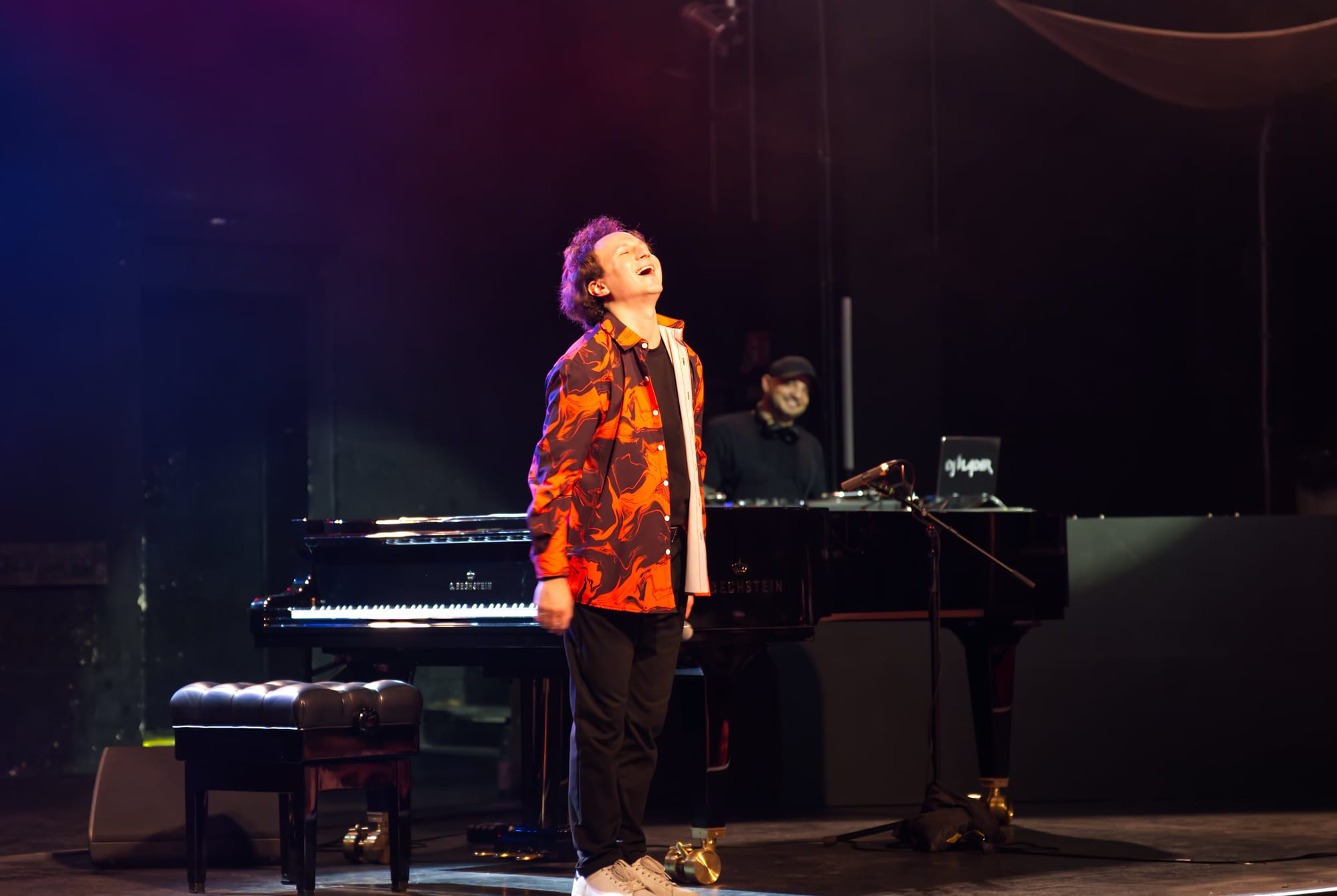 Und so boten der Pianist und sein DJ eine recht poppige Version von Frederic Chopins 'Prelude' und nannten ihre Darbietung denn auch „Chopin rockt“, was das begeisterte Publikum zum Toben brachte und einige Zuschauer sogar zum Tanzen in den Gängen animierte.