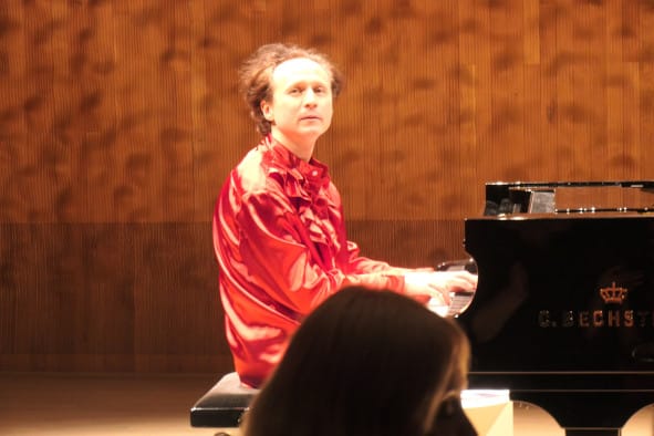 Charmant moderierte der sympathische Künstler selbst diesen Abend und gab Erklärungen zu den einzelnen Klavierstücken.