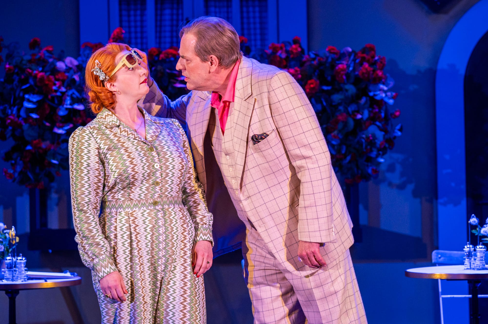In der Rolle der resoluten Rössl-Wirtin Josepha Vogelhuber machte Susanne Jansen in ihren verschiedenen offenherzigen Dirndl-Kleidern eine glänzende Figur (sämtliche Kostüme von Nini von Selzam und Susann Günther entworfen), so daß es nicht verwunderte, daß ihr Zahlkellner Leopold sich hoffnungslos in seine Chefin verliebte. Michael Rotschopf war dieser Leopold, der die Wirtin mit dem Lied „Es muß was wunderbares sein, von dir geliebt zu werden“ hingebungsvoll anschmachtete. Doch Josepha hatte nur Augen für ihren Feriengast Dr. Siedler, dem Rechtsanwalt aus Hamburg-Sasel, den sie temperamentvoll mit „Im Salzkammergut da kann man gut lustig sein“ begrüßte. Worauf der von ihr so schroff abgewiesene Leopold herzzerreißend das Lied „Zuschau'n kann i net“ anstimmte. Doch Stephan Schad als Dr. Siedler hat bereits ein Auge auf einen anderen weiblichen Gast geworfen, nämlich Ottilie, die Tochter des Berliner Fabrikanten Giesecke, gespielt und gesungen von Victoria Fleer. Für Dr. Siedler ist bei der Begegnung mit Ottilie „die ganze Welt himmelblau“, gemeinsam tanzen sie Tango, Foxtrott, und im zweiten Teil natürlich Walzer bei ihrem 'Verlobungs'-Duett „Mein Liebeslied muß ein Walzer sein“.