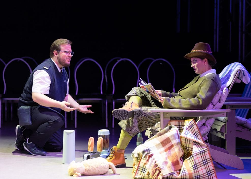 Und so startet die Reise in Indien. An Bord sind die beiden Entertainment-Offiziere, die große schlanke Jasmin (die Altistin Jasmin Désirée Schaff) und der knuffige Freddy (Frederik Essunger, ein hoher Bariton), sowie die skurile Passagierin Aline (die Sopranistin Aline Lettow), eine Art 'Miss Marple' in einem Sherlock-Holmes-Outfit, die vorgibt, sich mit Kriminalfällen gut auszukennen. Mit diesen Dreien steigen wir „in das Traumboot der Liebe“, dem Hit von Caterina Valente aus dem Jahr 1955, hier als Duett gesungen von Jasmin und Freddy.