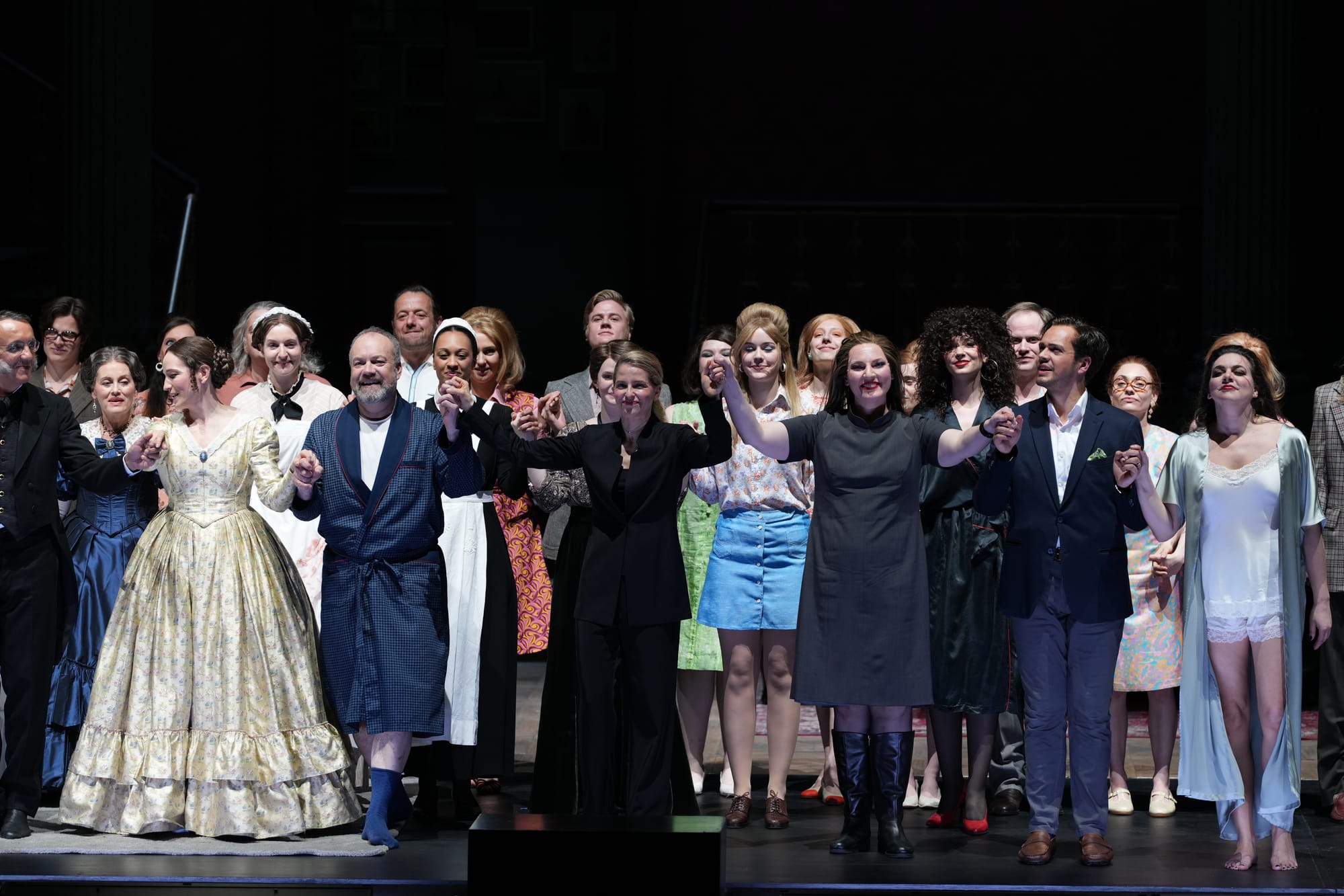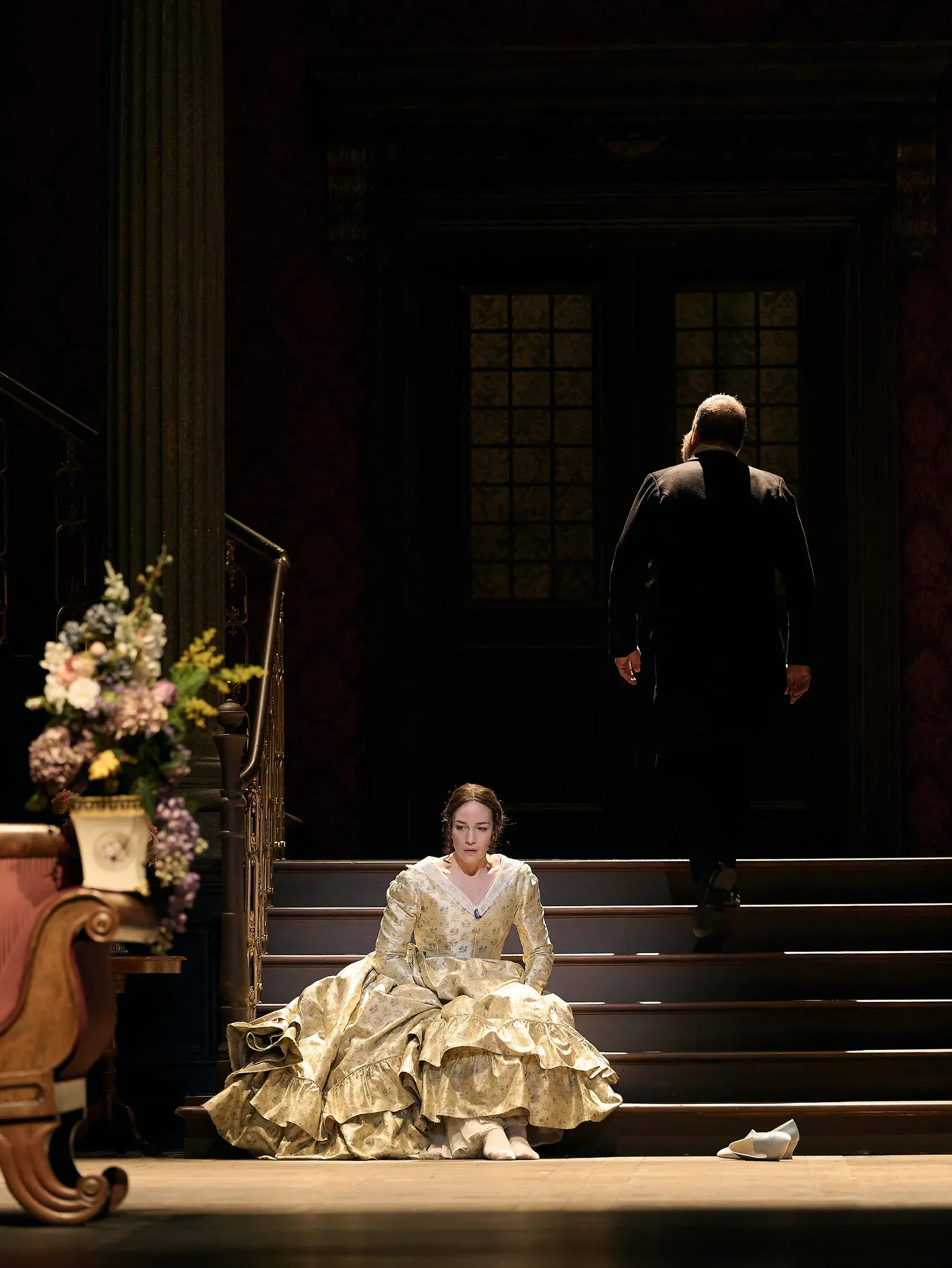 Und so beginnt der Abend mit der die acht Schumann-Lieder wunderbar gestaltenden lyrischen Mezzosopranistin Kate Lindsey. Auf einem Biedermeiersofa in hochherrschaftlichem Ambiente sitzend, besingt sie – zur zarten einfühlsamen Klavierbegleitung (Eric Le Sage) – IHN, den Grund ihrer Backfisch-haften Schwärmerei, seit sie ihn gesehen, IHN, den Herrlichsten von allen. Sie kann's nicht fassen, nicht glauben, daß ER sie erwählt und ihr den Ring an ihren Finger steckt. Sie ist glücklich, hat einfach glücklich zu sein als Frau, die ihrem Gatten als 'Heimchen am Herd' ein angenehmes Leben bereitet und auch noch Kinder bekommt.