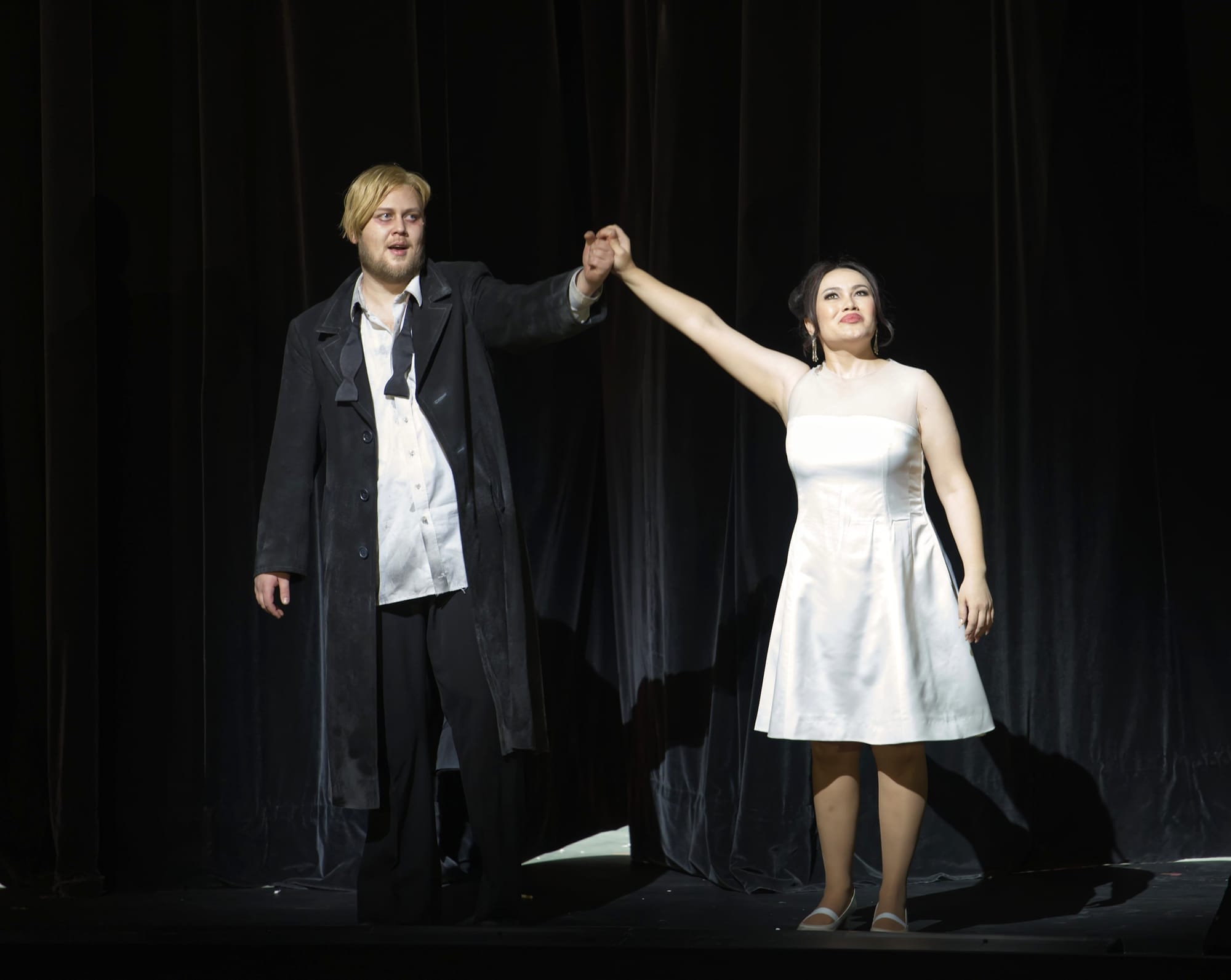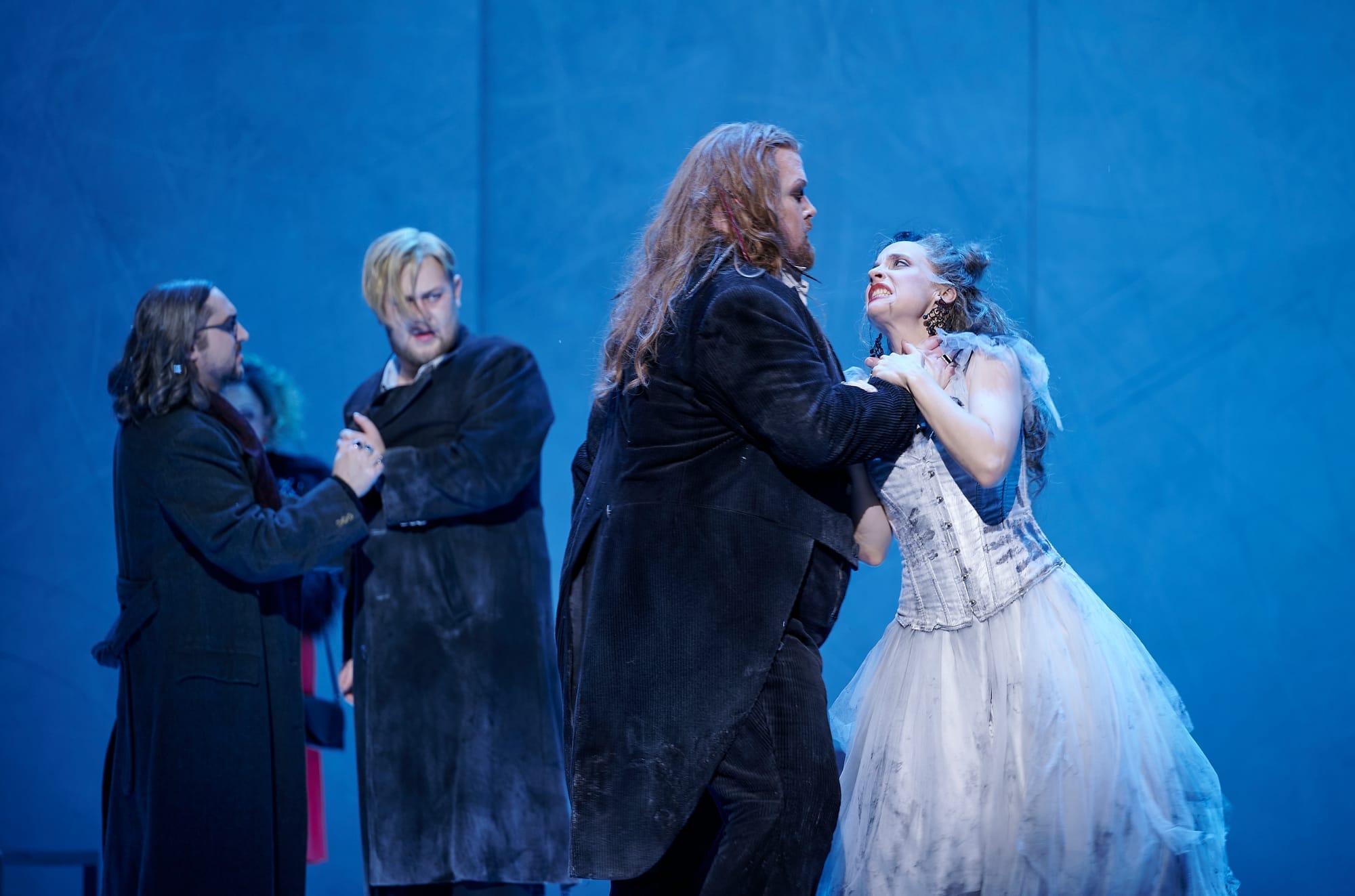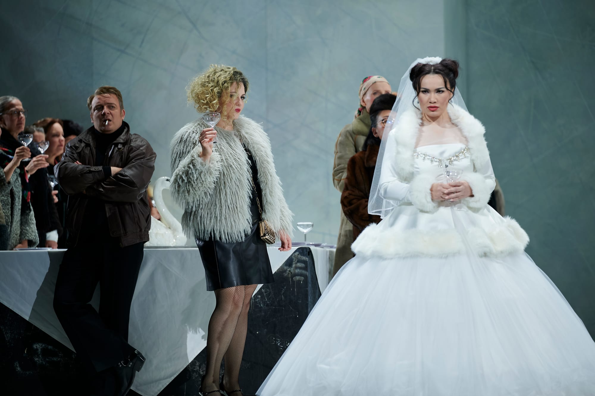 Barno Ismatullaeva gab an der Hamburger Staatsoper bereits Rollendebüts als Norma und als Elisabetta in „Maria Stuarda“, nun fügte sie ein weiteres hinzu und präsentierte als Ljudmila ihren klangschönen wandlungsfähigen Sopran, den sie sowohl dramatisch aufblühend, dann aber auch weich und empfindsam mit zarten Piani, feinen Zwischentönen, langen Bögen und sicheren Koloraturläufen einzusetzen verstand. Einen anrührenden Moment bot sie in ihrer angedeuteten Selbstmordszene, wenn sie sich mit den Kufen der Schlittschuhe ihre Pulsadern aufzuschneiden hatte, und sie sah entzückend aus zuletzt in ihrem weißen Brautkleid.