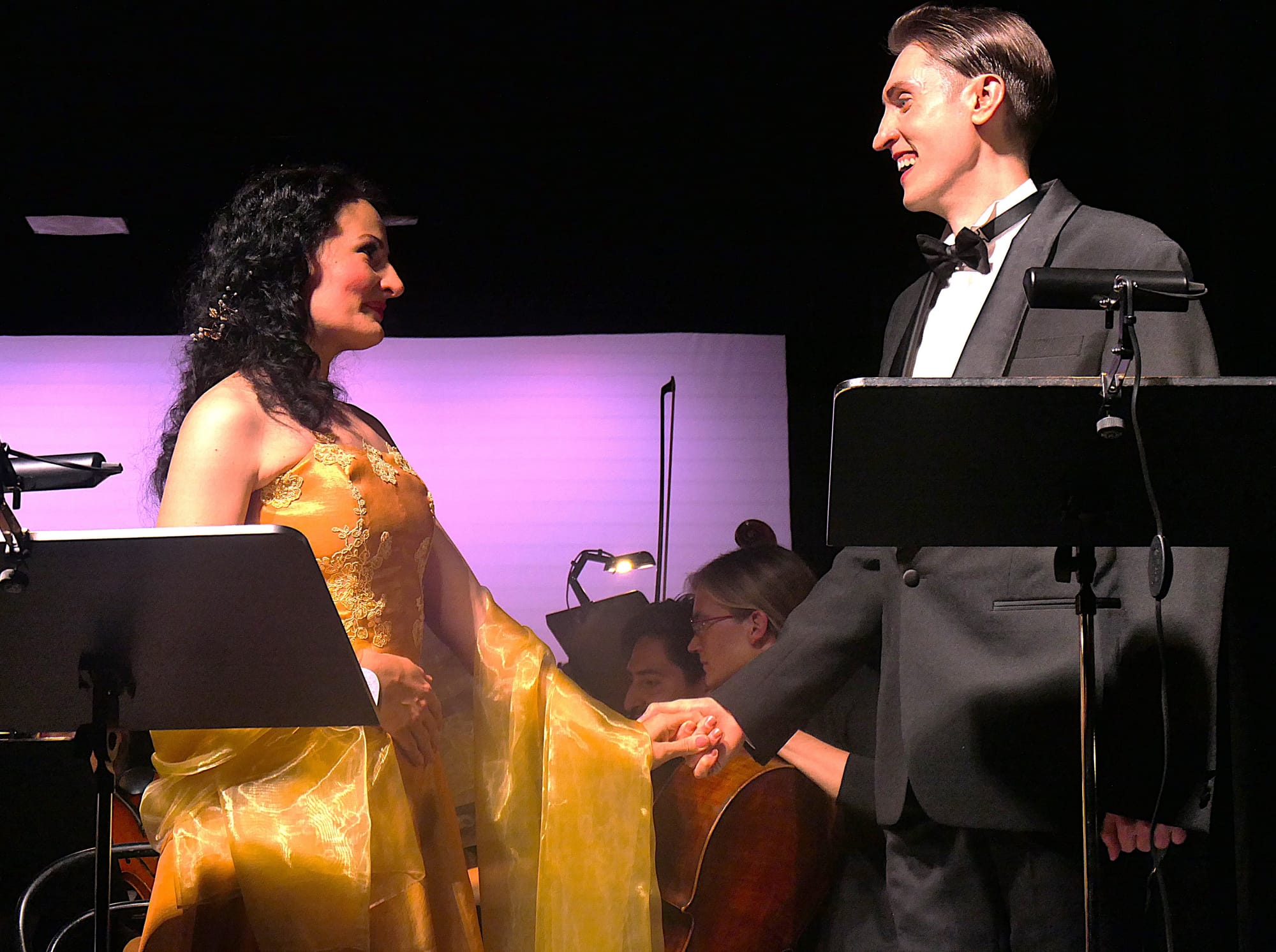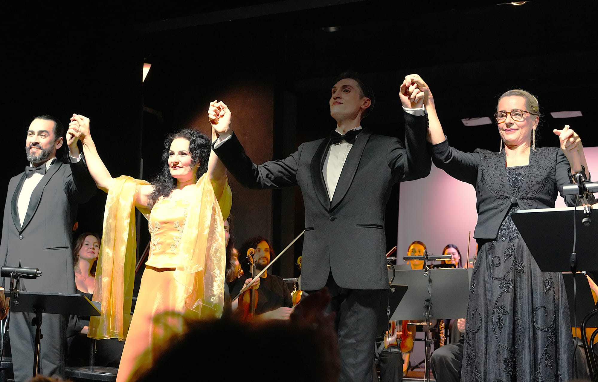 Das auf der Bühne platzierte wunderbar aufspielende Orchester bot ein wunderbares Belcanto-Klangbild von sinnenhafter Zartheit und Transparenz, die raffinierte Instrumentierung, die klangliche Sanftheit der Komposition kam bestens zur Geltung, die Streicher und die Flöten klangen geradezu magisch, während die Blechbläser zahlreiche dramatische Akzente setzen konnten.