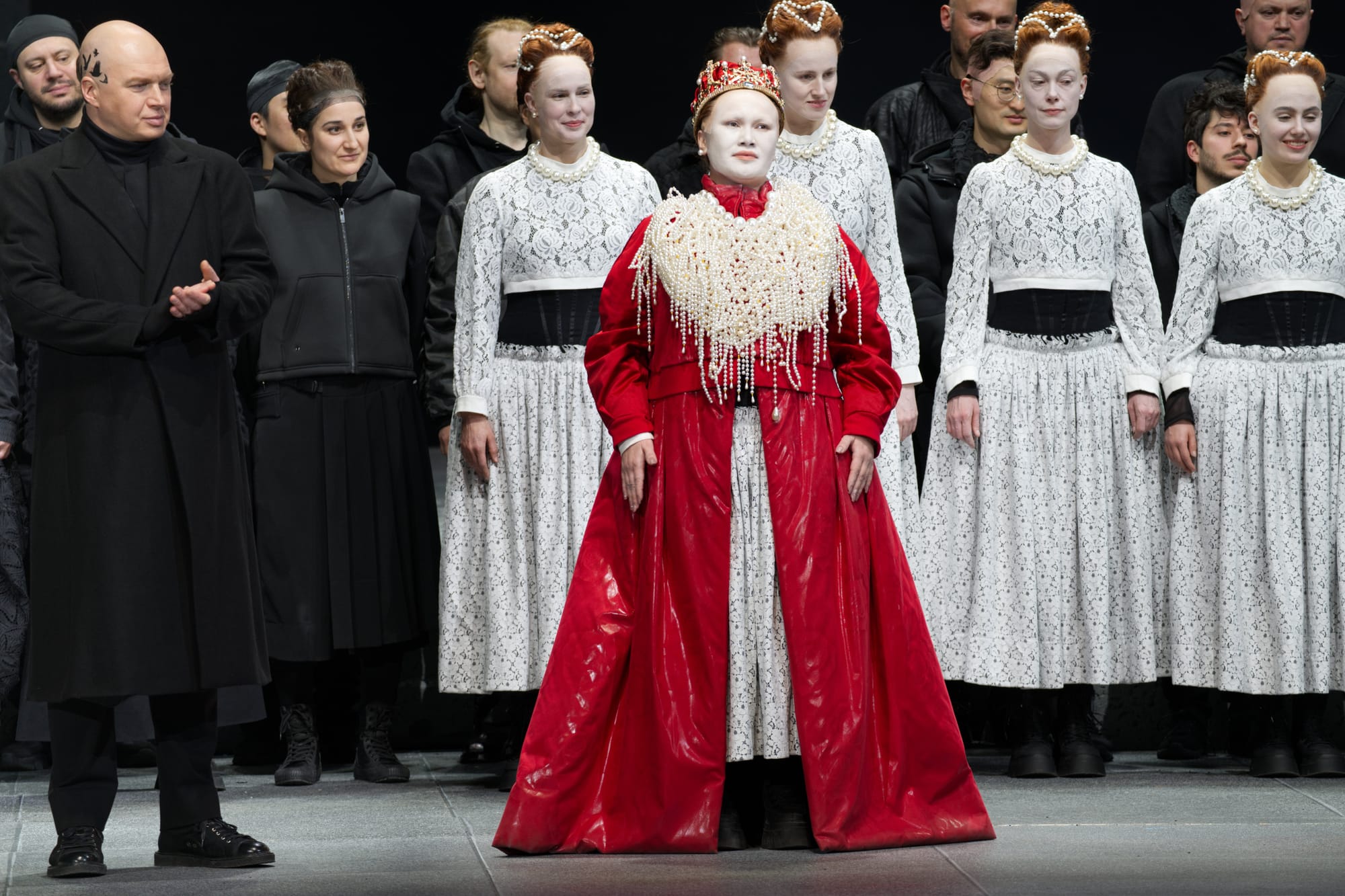 Nicht weniger eindrucksvoll war Barno Ismatullaeva in der Partie der Königin Elisabeth. Mit weiß geschminktem Gesicht, rotem Königsmantel, üppigen Perlenketten und goldener, mit Edelsteinen besetzter Krone auf dem Haupt war sie sogleich bei ihrem ersten Auftritt die gebieterische Majestät, präsentierte ihren warm timbrierten, klangschönen Sopran, den sie wunderbar wandlungsfähig einzusetzen verstand. In ihrer Auftrittsarie „Ah, quando all'ara sorgemi – Tacete, non posso risolvermi ancor“ setzte sie ihre Stimme empfindsam weich mit zarten Piani, langen Bögen, feinen Zwischentönen und sicheren Koloraturläufen ein, um sie dann aber auch immer wieder dramatisch und kraftvoll aufblühen zu lassen.