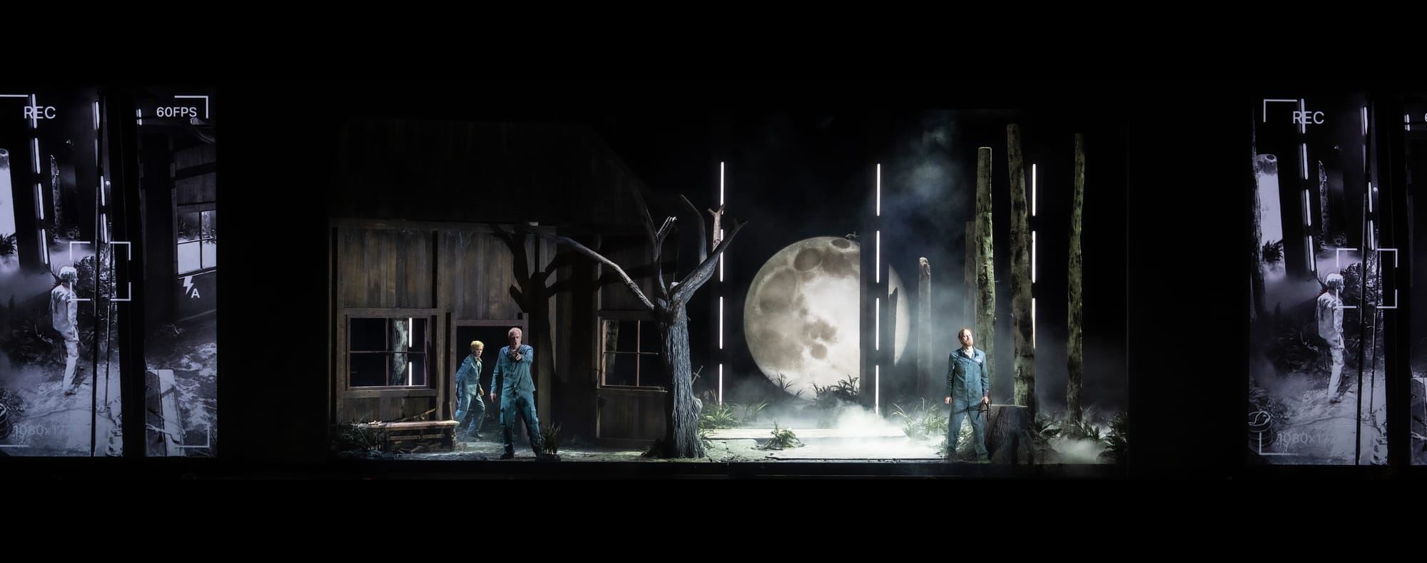 Der erste Aufzug ist weitgehend erwartbar. Zur Ouvertüre zum ersten Aufzug irrlichtert der Strahl einer Lampe durchs Unterholz, offenbar den Weg eines Flüchtenden erhellend. Vor einer Holzhütte in nebligem Wald (Bühne: Pia Dederichs, Lena Schmid) bricht ein erschöpfter Flüchtling zusammen und wird von der Hausfrau freundlich aufgenommen. Er erzählt von seiner Herkunft, von seinem Unglück, der getöteten Mutter, dem Verlust von Schwester und Vater und davon, überall auf Feindseligkeit gestoßen zu sein. Die Frau erzählt ihre Geschichte, von der Tötung ihrer Mutter, ihrer Verschleppung und davon, als Ehefrau gekauft worden zu sein und ohne Liebe hier bei ihrem Mann Hunding zu leben. Während Siegmund (Daniel Johansson) - so wird sie ihn später nennen - eher ein tumber Tor ist, der sich nicht erklären kann, warum ihm immer Feinseligkeit entgegenschlägt, obwohl er eigentlich mitmenschlich handelt, ist Sieglinde (Astrid Kessler) klarsichtig. Sie erkennt ihn rasch als ihren Zwillingsbruder, sie zeigt ihm das Schwert im Baum, das ihn für den Kampf gegen Hunding rüstet. Sie ist es auch, die dem heimkehrenden Hunding (Tijl Faveyts) erst den betäubenden Schlaftrunk bereitet und ihn dann, als er doch noch erwacht, gnadenlos mit einem Ast niederschlägt und mit Fußtritten malträtiert. Und schließlich ergreift sie die Initiative zum Ehebruch und Inzest mit Siegmund, und reißt ihm das Hemd auf zu einer beglückenden Liebe, in der das Wälsungenblut hinter der Szene erblüht. Das alles wird von einer Überwachungskamera erfasst, von der nicht klar ist, wer sie installiert hat, wohl kaum Hunding.