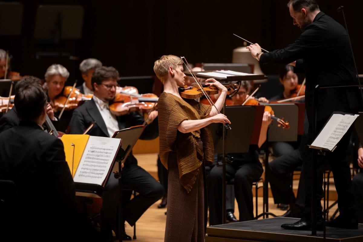 Die Solistin Isabelle Faust, kurzfristig eingesprungen für Hillary Hahn, begeistert das Publikum mit ihrem lebendigen Spiel: konzentriert, aber lächelnd, scheinbar ohne jede Anstrengung, mit einer blitzsauberen Intonation, die Flageoletts sitzen punktgenau, mit dem Klang ihrer Strad, der „Sleeping Beauty“, einer frühen Stradivari von 1704. Sie wird aufmerksam und sensibel begleitet; herrlich ihr instrumentaler Tanz mit den ersten Geigen im Furiant. Musiker sagen, wenn sie mit Isabelle Faust spielen, spielten sie selbst besser. Die zu Recht eingeforderte Zugabe einer Fantasie in h-Moll von Georg Philipp Telemann, eigentlich für Flöte, von ihr transkribiert, zeigt noch einmal die große Kunst der Isabelle Faust: eine wunderbare, innige Tongebung, ein sehr differenziert eingesetztes Vibrato, verbunden mit einer perfekten Technik. Brava! Bravissima!