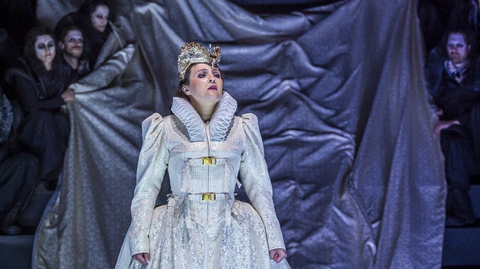 Donizettis Werk mit seiner melodischen Schönheit, seinen virtuosen Arien, seiner emotionalen Intensität und den tiefgründigen Charakterzeichnungen fand seine effektvolle Entsprechung in dem spannungsreichen Dirigat von Tokahiro Nagasaki, der die Partitur mit seinem Philharmonischen Orchester sowohl weich und fließend, aber auch dynamisch und leidenschaftlich zupackend auszuloten verstand. Die Streicher glänzten mit zart schwingenden Melodiebögen, aber auch die solistischen Einlagen der Bläser und ganz besonders der Einsatz der Glasharmonika während Lucias großer Wahnsinns-Szene verfehlten ihre Wirkung nicht und sorgten für ein ungewöhnliches, herrliches Klangerlebnis. Am Ende stirbt sie hier nicht, sondern bleibt in ihrem blutbefleckten weißen Kleid auf der Bühne sitzen, so als ob sie ihren Triumph genießt, sich in dieser rauhen Männerwelt behauptet zu haben.