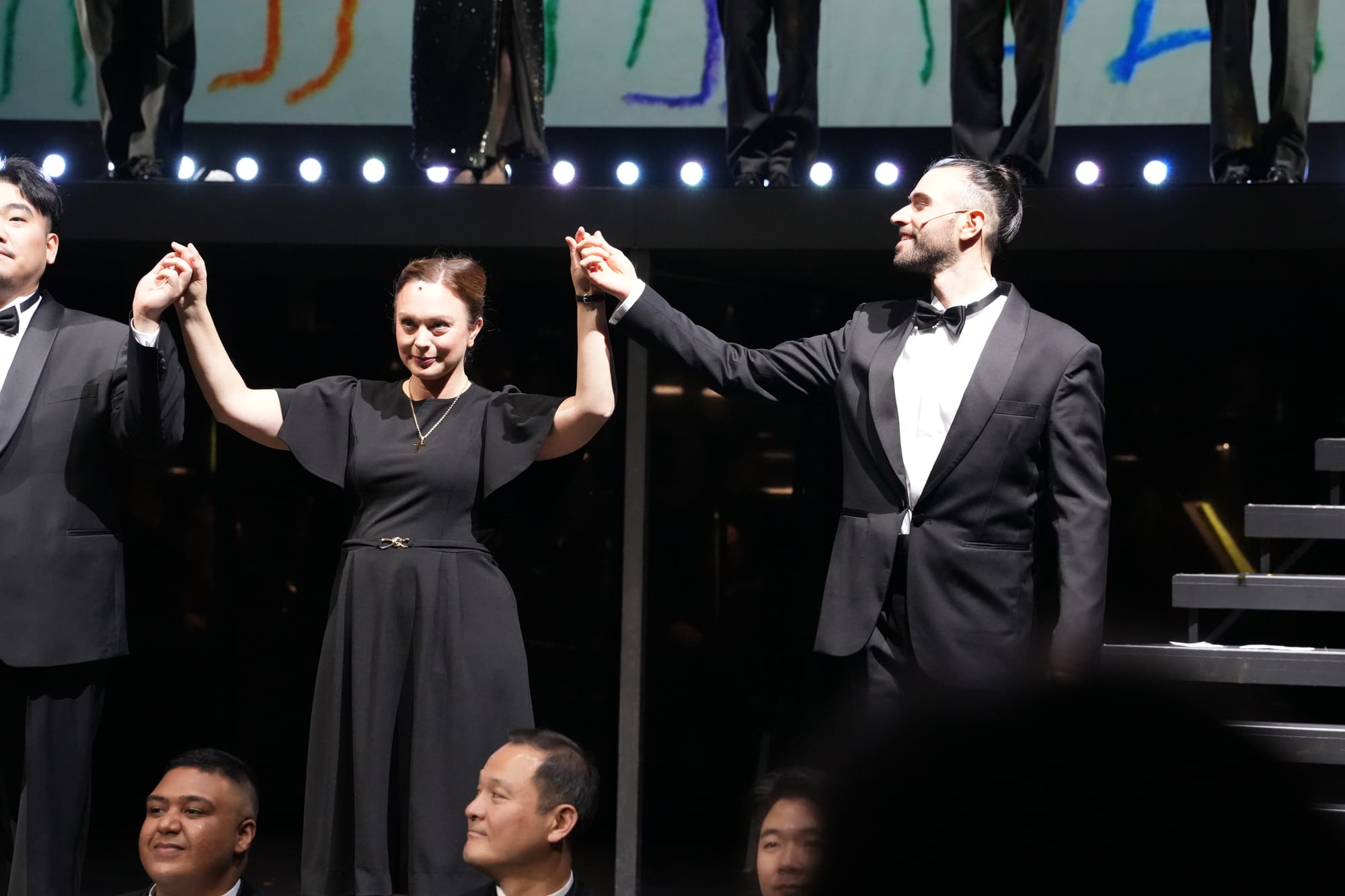 Musikalisch war dieser Premierenabend vom Feinsten. Dirigent Nathan Bas setzte mit seinem Philharmonischen Orchester Bernsteins schwungvolle, mit raffinierten Instrumentierungen und knalligen Klangpointen gespickte Partitur treffend um und hatte großen Anteil an dem Erfolg dieses heiteren Premierenabends. Es war bewundernswert, wie natürlich und wie selbstverständlich er die Übergänge zwischen den unterschiedlichen Stilen nahm – Jazz, Walzer, operettenhafte Passagen, Flamenco – meisterlich bis in jede rhythmische Finesse.