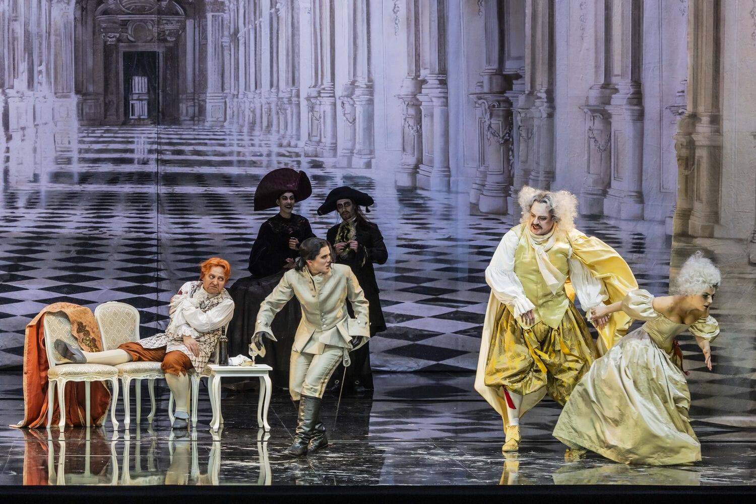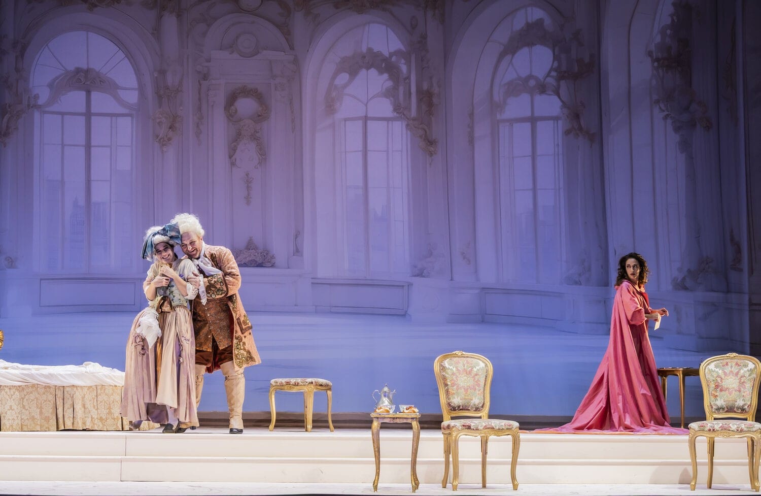 Gastregisseur Michael Wallner, dessen Lübecker Inszenierungen von Korngolds „Die stumme Serenade“ und Lloyd-Webbers „Sunset Boulevard“ noch in bester Erinnerung sind, schuf eine herrlich klassische Inszenierung dieser turbulenten musikalischen Komödie mit exquisiter, ausgefeilter Personenregie und viel Liebe zum Detail. Szenen wie gleich zu Beginn das lockere, vergnügliche Liebesspiel zwischen der Marschallin und ihrem jungen Octavian, oder auch die skurrilen Auftritte des Intriganten-Paars Annina und Valzacchi zeugten von seinen originellen komödiantischen Einfällen.