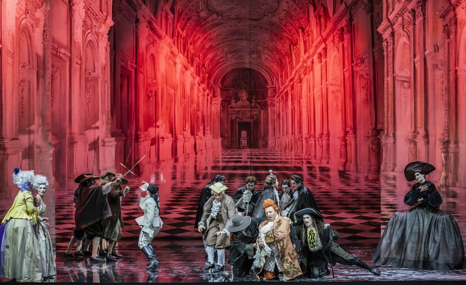 Andrea Stadel war eine fröhliche, trefflich schrill singende und übermütig agierende Leitmetzerin. Noah Schaul als humpelnder Valzacchi und Delia Bacher als Annina in ihrem ausladenden Kostüm und dem größten Hut des Abends führten ihre Rollen als Intriganten-Paar vorzüglich aus.