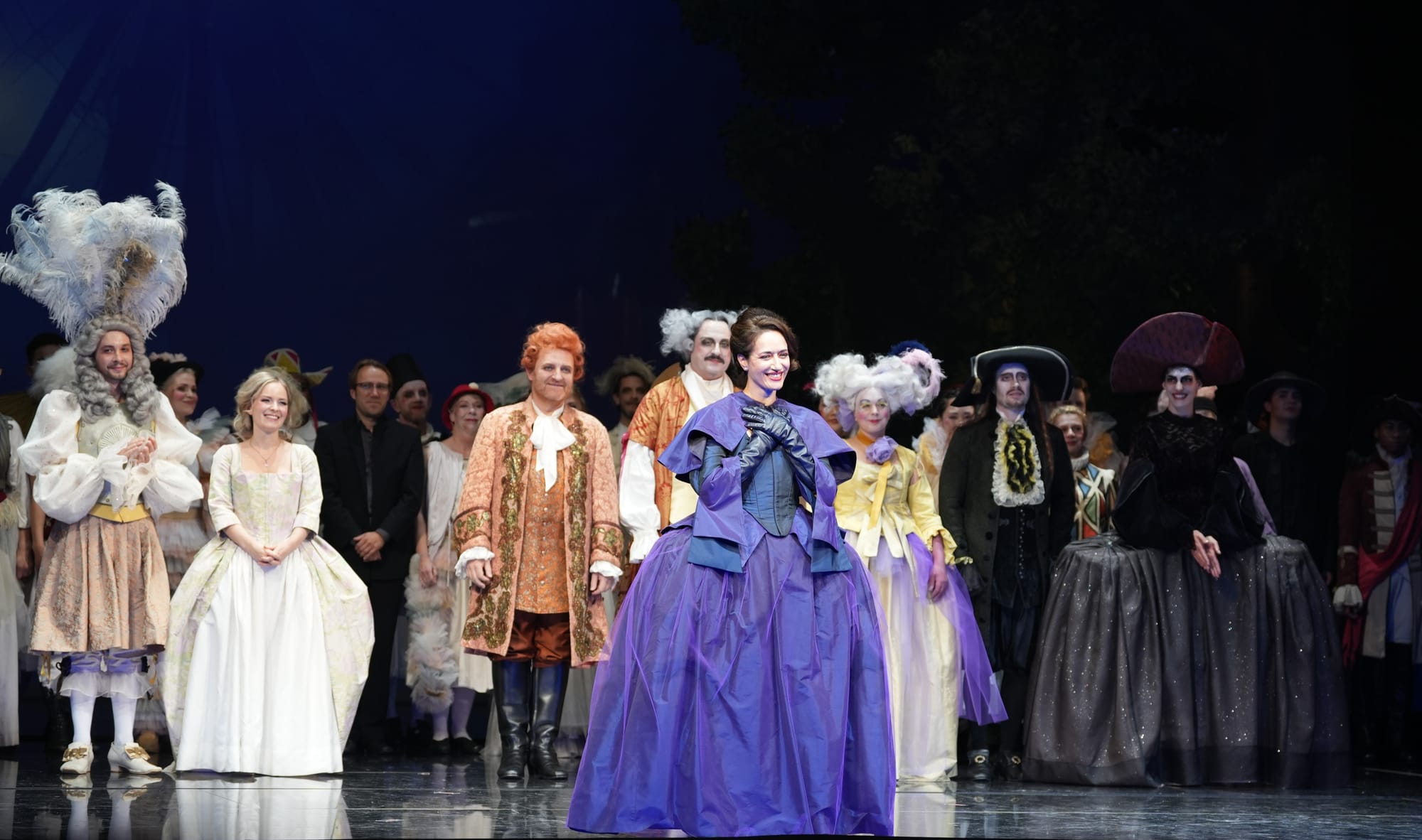 Andrea Stadel war eine fröhliche, trefflich schrill singende und übermütig agierende Leitmetzerin. Noah Schaul als humpelnder Valzacchi und Delia Bacher als Annina in ihrem ausladenden Kostüm und dem größten Hut des Abends führten ihre Rollen als Intriganten-Paar vorzüglich aus.