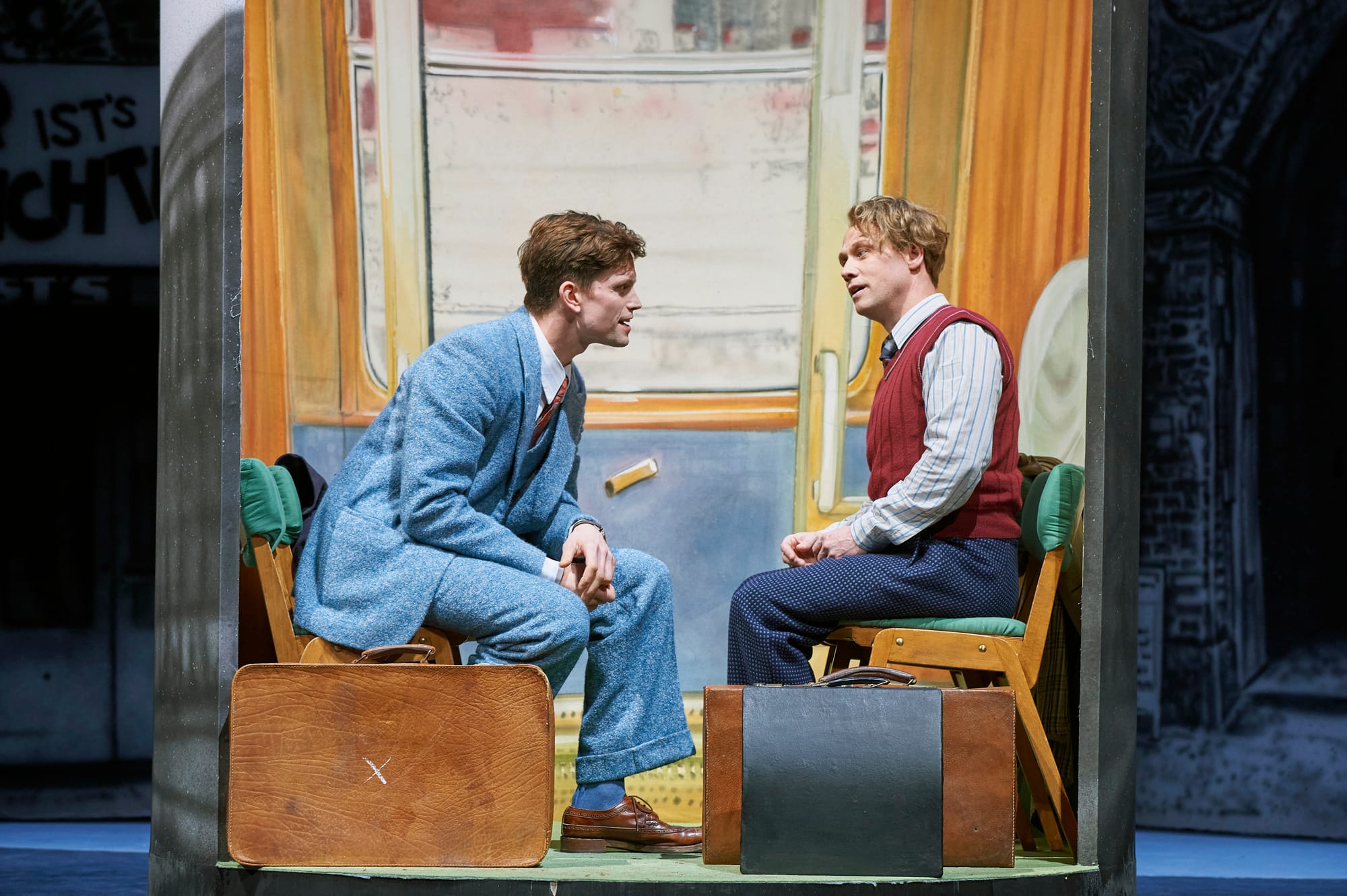 Durch Drehung dieser Kulisse erscheinen halbkreisförmige Räume wie die Showtreppe des nicht wirklich glamourösen Kit-Kat-Clubs, oder ein kleines Eisenbahnabteil, in dem sich Cliff Bradshaw und der zwielichtige Ernst Ludwig erstmals begegneten, oder das enge Zimmer in Fräulein Schröders Pension mit Bett, Schreibtisch, aufgemalter blauer Couch und Waschbecken, in dem Sally und Cliff leben.