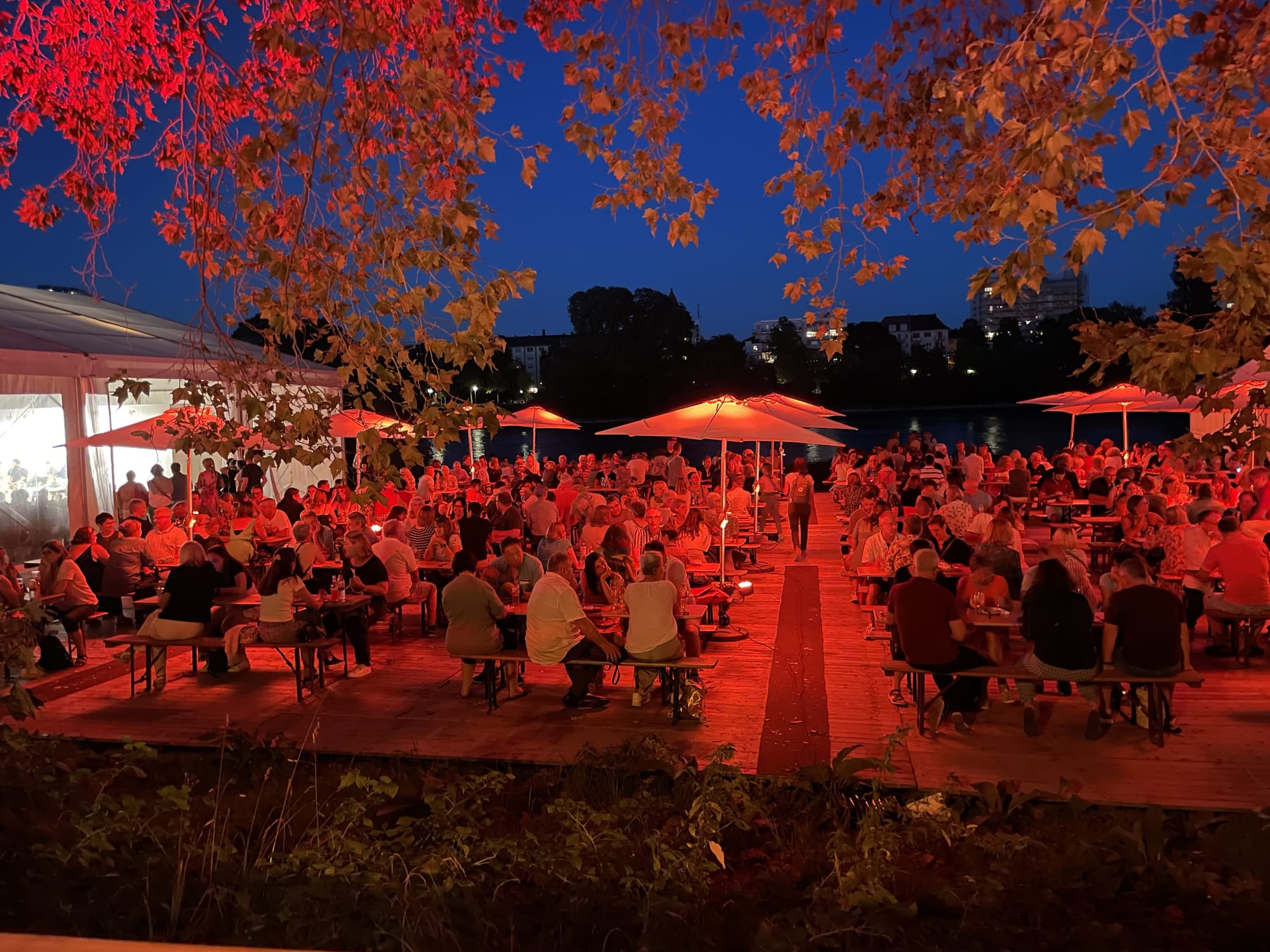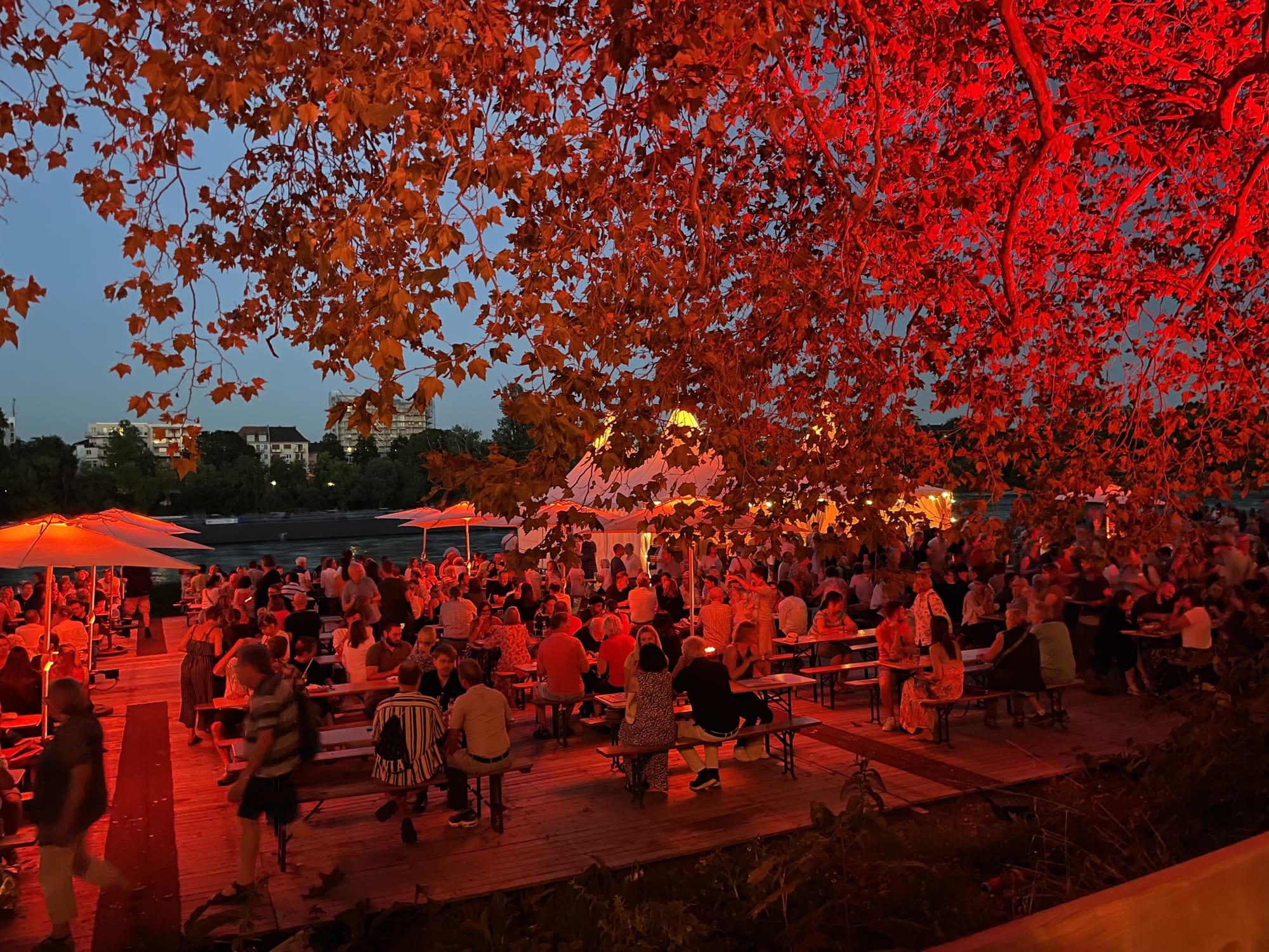 Ein Sonntag im September wie aus dem Bilderbuch. Die Sonne strahlt vom blauen Himmel, am Rheinufer haben Pärchen und Familien Liegestühle in den Kies gestellt oder liegen auf Decken – vielleicht, um den angekündigten Blutmond zu beobachten oder einfach den Spätsommer zu genießen. Jetski-Fahrer rasen auf dem Fluss auf und ab, bisweilen zieht gemächlich ein Frachter vorbei. Und gleich nebenan, im Schatten der mächtigen Platanen, deren Zweige teilweise fast bis auf den Boden reichen, genießen hunderte Filmfans Wurstsalat mit Wedges oder Rote-Beete-Carpaccio mit einem Glas Pfälzer Wein, wieder andere sitzen im großen Open-Air-Kino mit der Riesen-Leinwand direkt am Rheinufer, kommen bei Filmgesprächen mit Schauspielern, Regisseuren und Drehbuchautoren ins Gespräch oder stehen in den Warteschlangen vor einem der drei Zeltkinos. Es ist der 7. September, der letzte Tag des 21. Festivals des Deutschen Films. Seit 2005 lockt das Festival die Stars der deutschen Film- und Fernsehbranche nach Ludwigshafen und zaubert für mehr als zwei Wochen ein wenig Weinfest-Atmosphäre auf die Parkinsel.