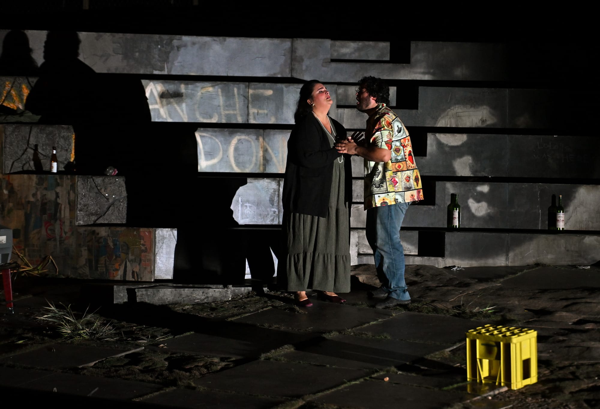 Das Verismus-Diptychon eröffnet die Saison des OPÉRA ORCHESTRE NATIONAL DE MONTPELLIER und schärft durch seine Verlegung in einen heruntergekommenen Vorort das Bewusstsein für soziale Benachteiligung. Unter der Leitung der italienischen Regisseurin SILVIA PAOLIE werden die Ausgegrenzten von Künstlern interpretiert, die das Publikum tief bewegten, insbesondere die französische Mezzo-Sopranistin MARIE-ANDRÉE BOUCHARD-LESIEURS als SANTUZZA…