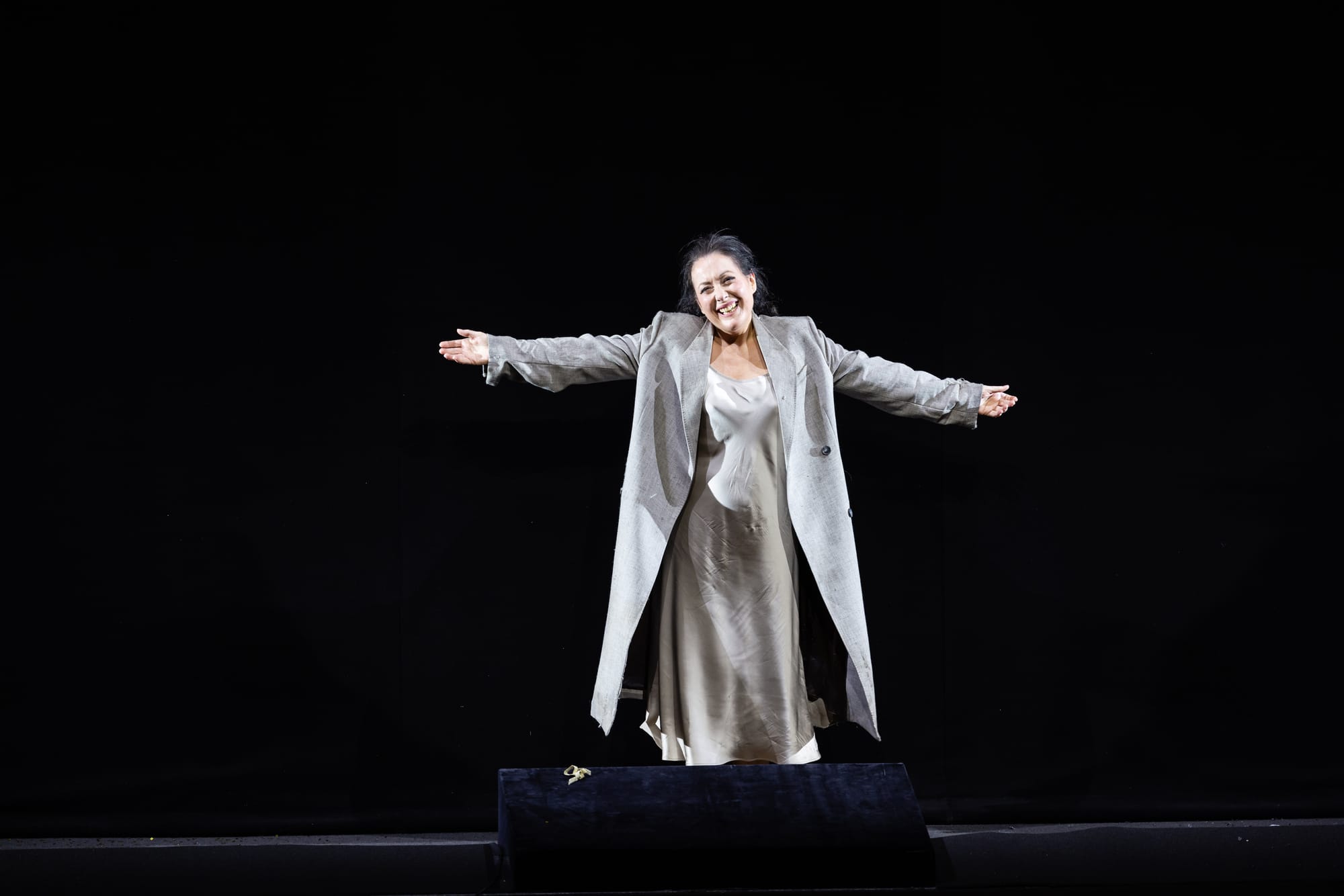 Dazu das sängerische und gestalterische Genie einer Manuela Uhl, die den Mut und das Können besaß, uneingeschränkt und spontan für die erkrankte Malin Byström einzuspringen. Und zwar nicht nur von der Seite als halbe Statistin und gleichsam in „Zivil“. Eben nicht als „Ersatzmitglied“ des Ensembles gerade nicht nur einspringend, sondern mit vollem Risiko und im gestalterischen und sängerischen Bereich der schwierigen Rolle mitspielend, als wäre sie von Anfang an bei Einstudierung dabei gewesen. Wobei sie mehr als wenig Zeit hatte, sich vorzubereiten und sich in die Inszenierung von Claus Guth einzufinden.