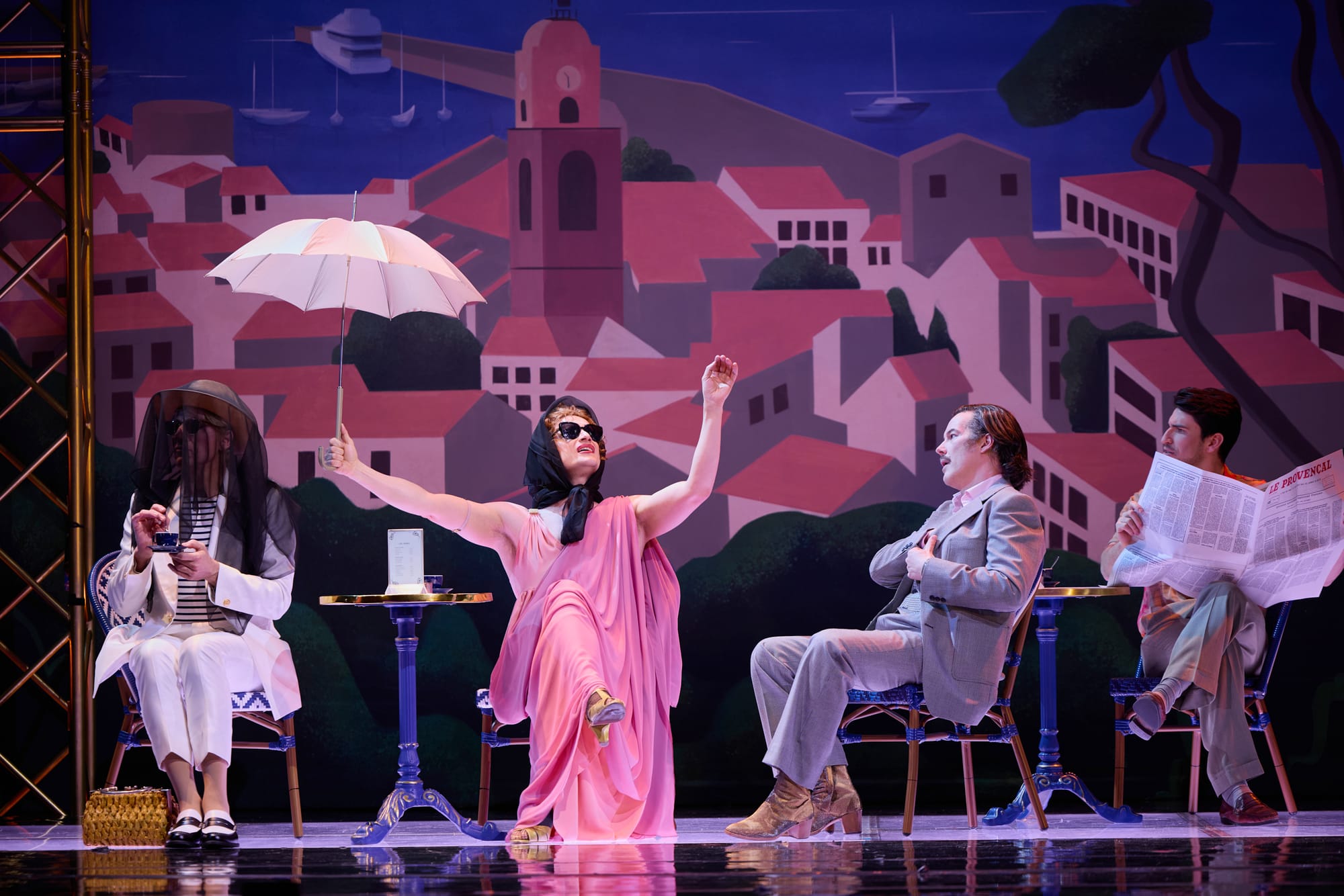 Was für ein beschwingter Abend! Das Musical La Cage aux Folles wurde 1983 am Broadway uraufgeführt und basiert auf dem gleichnamigen Theaterstück von Jean Poiret. Die Musik stammt von Jerry Hermann, das Buch schrieb Harvey Fierstein. Die Uraufführung war ein großer Erfolg und gewann mehrere Tony Awards, darunter für das beste Musical. Schön, dass dieses großartige Musical jetzt auch im Gärtnerplatztheater gelandet und von Josef E. Köpplinger großartig inszeniert wurde. Köpplinger setzt die Produktion auf viel Tempo, opulente und schöne Kostüme von Alfred Mayerhofer, mitreißende Tanzszenen eines eindrucksvollen Männerballetts, choreografiert von Adam Cooper, sowie abwechslungsreiche und stimmungsvolle Bühnenbilder von Rainer Sinell. Doch durch das rasante Tempo gehen leider Feinheiten der Charaktere und Auseinandersetzungen der unterschiedlichen Welten etwas verloren. Alles fügt sich zu glatt, zu leicht, gerade die Gegensätze, die dem Stück seine emotionale Tiefe verleihen, hätten mehr herausgearbeitet gehört.