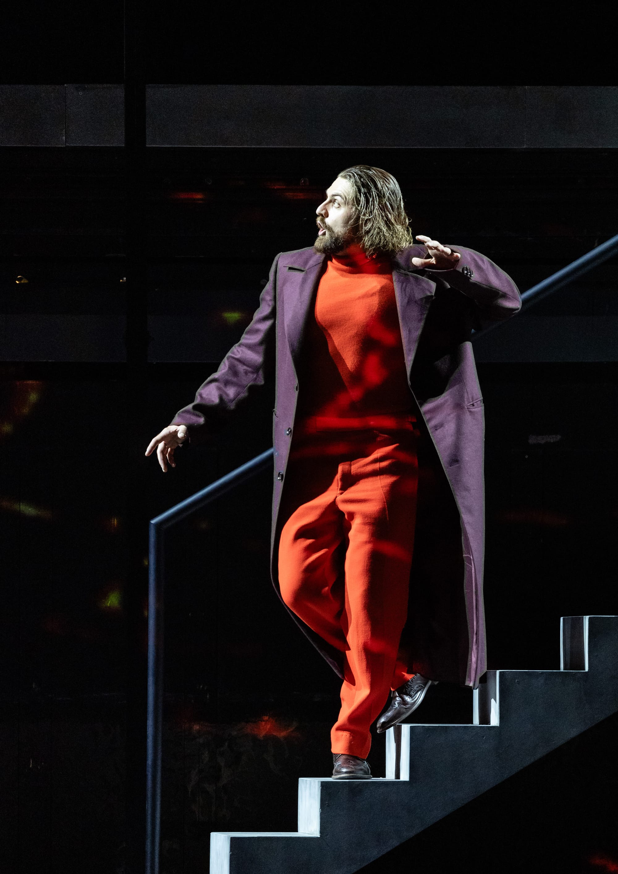 Wie dem auch sei: Immerhin waren da ja Geister im Spiel, so eine Art Wiedergänger, ganz in Rot gekleidete Gestalten aus der Unterwelt: Pluto, der Gott der Unterwelt, von Andreas Scarfi und Joa Da Graca Santiago als Proserpina, die Gattin Plutos, sowie von Erica D´Amico und Aurora Bonetti dargestellt. Unruhige Leute, die gleichsam in den Körper des Unholds Don Giovanni hineinflossen und offenbar seinen Charakter unwiderruflich prägten. In der Folge schien Don Giovanni, folgte man der Regie, so eine Art Zwitterwesen zu sein, sein zu müssen, changierend zwischen geheimnisvollem Mann und geheimnisvoller Frau, ohne dass freilich im Verlauf des Geschehens so richtig klar wurde, wo die konkreten Einflüsse dieser Figuren auf den Geschehensablauf festzumachen waren. Immerhin trug Don Giovanni in der Folge wie diese „Geisterfiguren“ Rot, was wohl nahelegen sollte, dass er sowohl unter weiblichem als auch unter teuflisch-männlichemEinfluss stand und handelte. Wenn er auch, im Widerspruch wohl zum Regieeinfall, der ja göttergleiche männliche und weibliche Einflüsse geltend machen wollte, unbeirrt mit seinem halb neurotischen, halb selbstbewusst triebhaften Verhalten fortfuhr wie ein Macho. Sich also nicht gehindert sah, den Frauenhelden wie zuvor weiterzuspielen. Etwa zusammen mit seinem meisterhaften, von Kyle Ketelsen gesungenen und gespielten Leporello seine verwerflichen Spiele mit den Frauen zu treiben. Besonders mit der herausragend singenden und spielenden Donna Elvira Samantha Hankeys, der Leporello ein Ständchen darbot, wobei er sich als Don Giovanni ausgab. Das alles geschah auf relativ karg, modern bis modernistisch ausgestatteter Bühne, gerade, architektonisch einfach gestaltete oder angedeutete Bauten, die das moderne Leben illusionslos hereinholten, geradeso wie wenn das alles sich heute abspielen könnte. Dagegen machten die geisterhaft rot gewandeten, an Märchenhafte gemahnenden, die immer wieder einmal über die Bühne huschten, keinen entscheidenden Einwand aus. So mutete ungeachtet des Textes aus grauer Vorzeit das Geplänkel durchaus modern und nachvollziehbar an. Die quirlige Zerlina der Avery Amereau war ein Genuss, ebenso wie der von Michael Mofidian dargebotene Masetto als gebeutelter und vom Verführer verprügelter Bräutigam einer Braut, die es nicht so genau nahm mit der Treue. Hin und her wogte das Geschehen zwischen der Ermittlungsarbeit und den gelegentlichen Zweifeln an der Täterschaft der Verdächtigen – wer war nun wirklich der Täter, wer hat im Zweikampf Donna Annas Vater, den Komtur, Christof Fischesser (was für ein Bass!), getötet? –, bis schließlich Gewissheit eintrat und das Geschehen („aber wehe, wehe, wenn ich auf das Ende sehe …“, W. Busch) auf den Untergang des von keinen moralischen Skrupeln geplagten Don Giovanni hinauslief.
