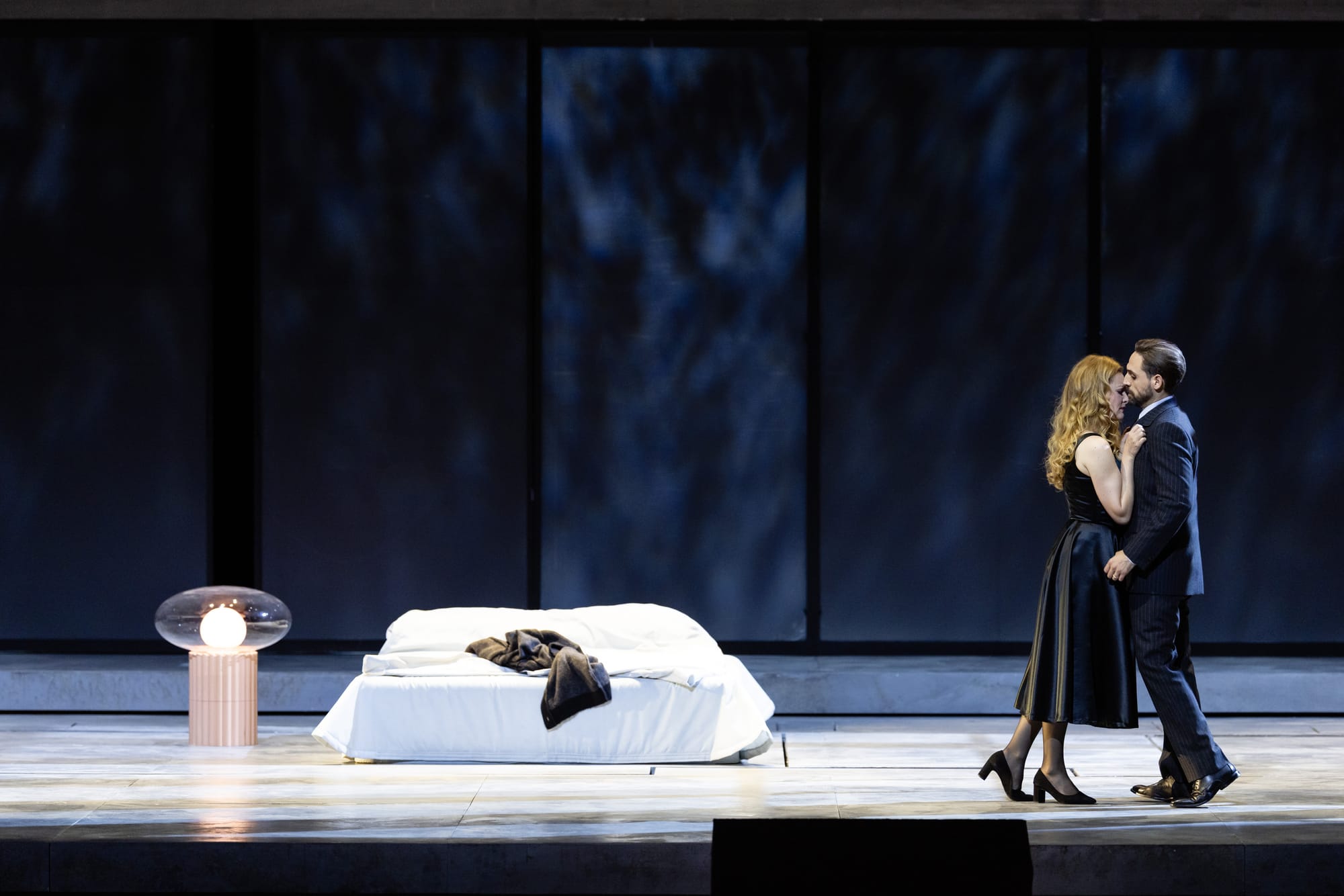 Also mal ganz unter uns. So wie David Hermann, der die Regie führte, sich das vorzustellen scheint, so harmlos und fast nebenbei ist es nun doch nicht. Immerhin hat Don Giovanni – eindrucksvoll Konstantin Krimmel –, als er Donna Anna, wie auch immer, missbrauchte, diese über seine Identität getäuscht oder deren Irrtum, bei ihm handele es sich um den Verlobten, zu seinem Handeln benutzt.