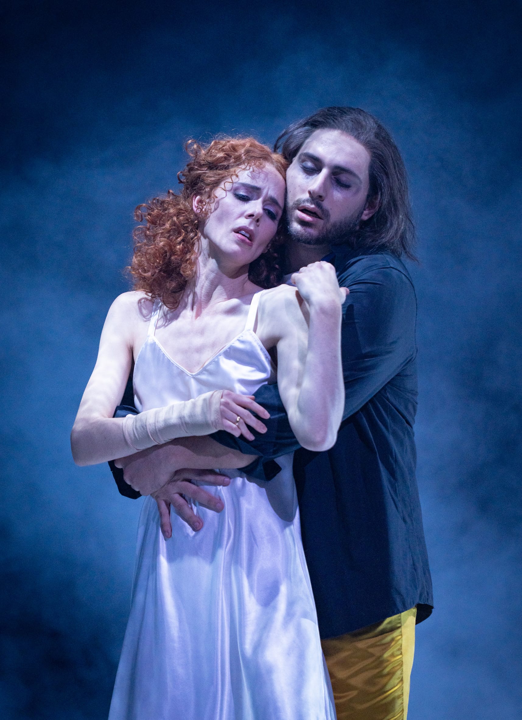 Bestechend klar und artistisch in den punktgenauen Koloraturen erklingt die Sophie von Penelope Kendros. Ihr silbrig helles Timbre steht im denkbar größten Kontrast zum erdenschweren, pastellfarbenen Mezzo der Kollegin Bienert, was deren Duette zum musikalischen Ereignis werden lässt. Szenisch ist sie der Wildfang, den diese Inszenierung braucht, um Atem zu holen für die folgenden Katastrophen. Sie ist vertrauensvolle Schwester, liebe Freundin, verständnisvolles Familienmitglied und munter parlierendes Mädchen am Beginn des Erwachsenwerdens. Der Kendros gelingt es immer wieder, raumgreifend die Bühne für sich einzunehmen und dem Auditorium ein Lächeln abzutrotzen. Selbst in einem Werk die diesem.