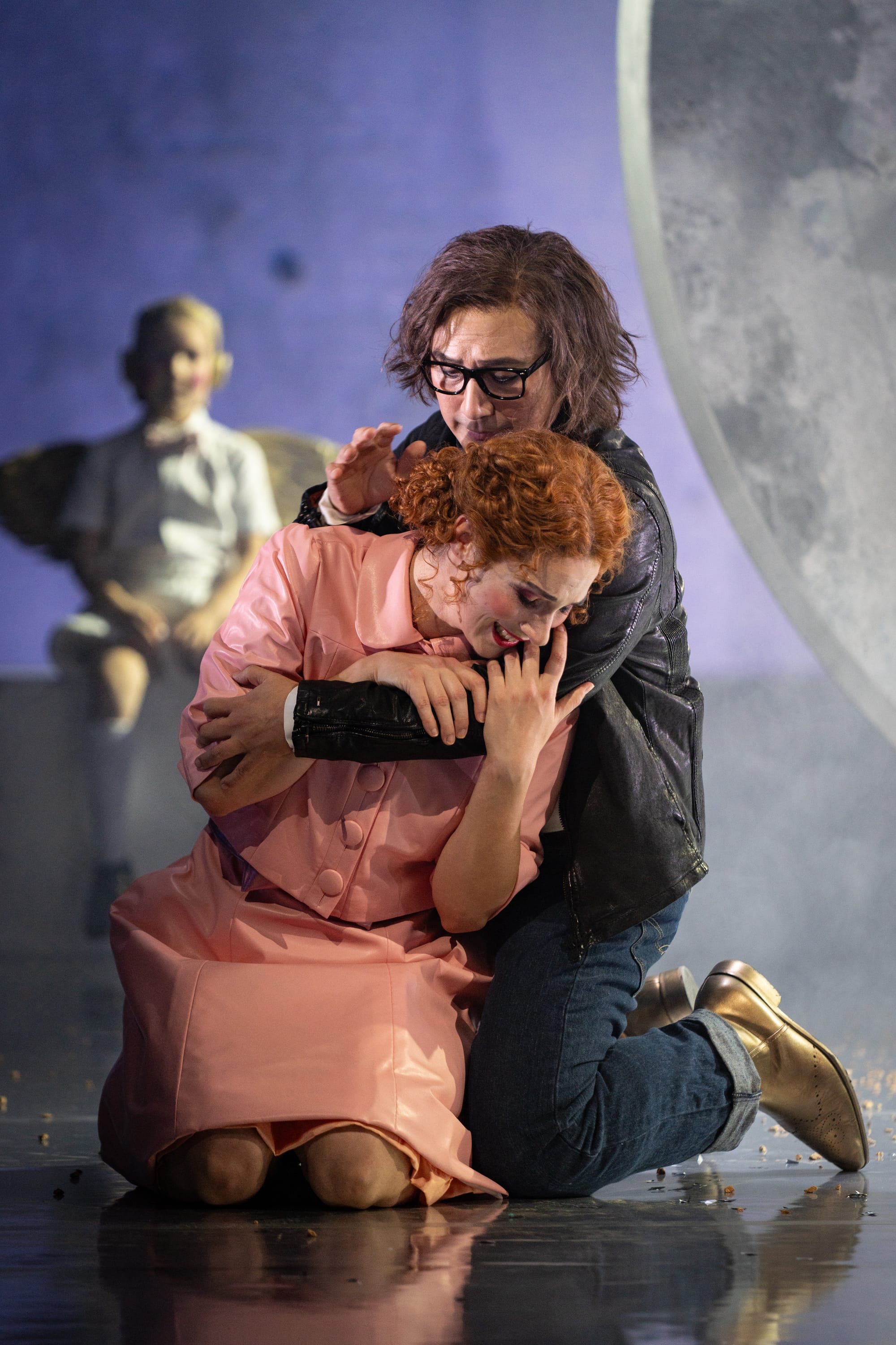 In diesem Setting findet nun Massenets Werther in der Handschrift von Kai Anna Schuhmacher statt. Der Oper schreibt sie ganz frei eine neue Bedeutung den beiden (von Massenet hinzuerfundenen) Charaktere Schmidt und Johann, Freunde von Charlottes Vater, ein. Sie werden, ausstaffiert als silbergekleidete Wesen undefinierbaren Geschlechts, zu Götterdämmerungs-Nornen dieser Geschichte, ähnlich den dem Schicksal in die Fäden greifenden Macbeth-Hexen, allerdings mit kleinen Engelsflügeln. Aber ihr Ansinnen ist jenes einer platten Wette um die Frage, welcher der beiden Männer denn nun das Herz von Charlotte gewinnen wird, was die vom Orchester traumhaft gespielte Ouvertüre nicht gering belastet. Das clowneske und teils nervende Erscheinen der beiden Gestalten mag man im ersten Akt noch goutieren. In den Folgeakten, wo sie dann auch in intimsten Momenten der Szene ihr Possenspiel reißen, ist man mindestens nachhaltig irritiert und auf jeden Fall abgelenkt vom Eigentlichen.
