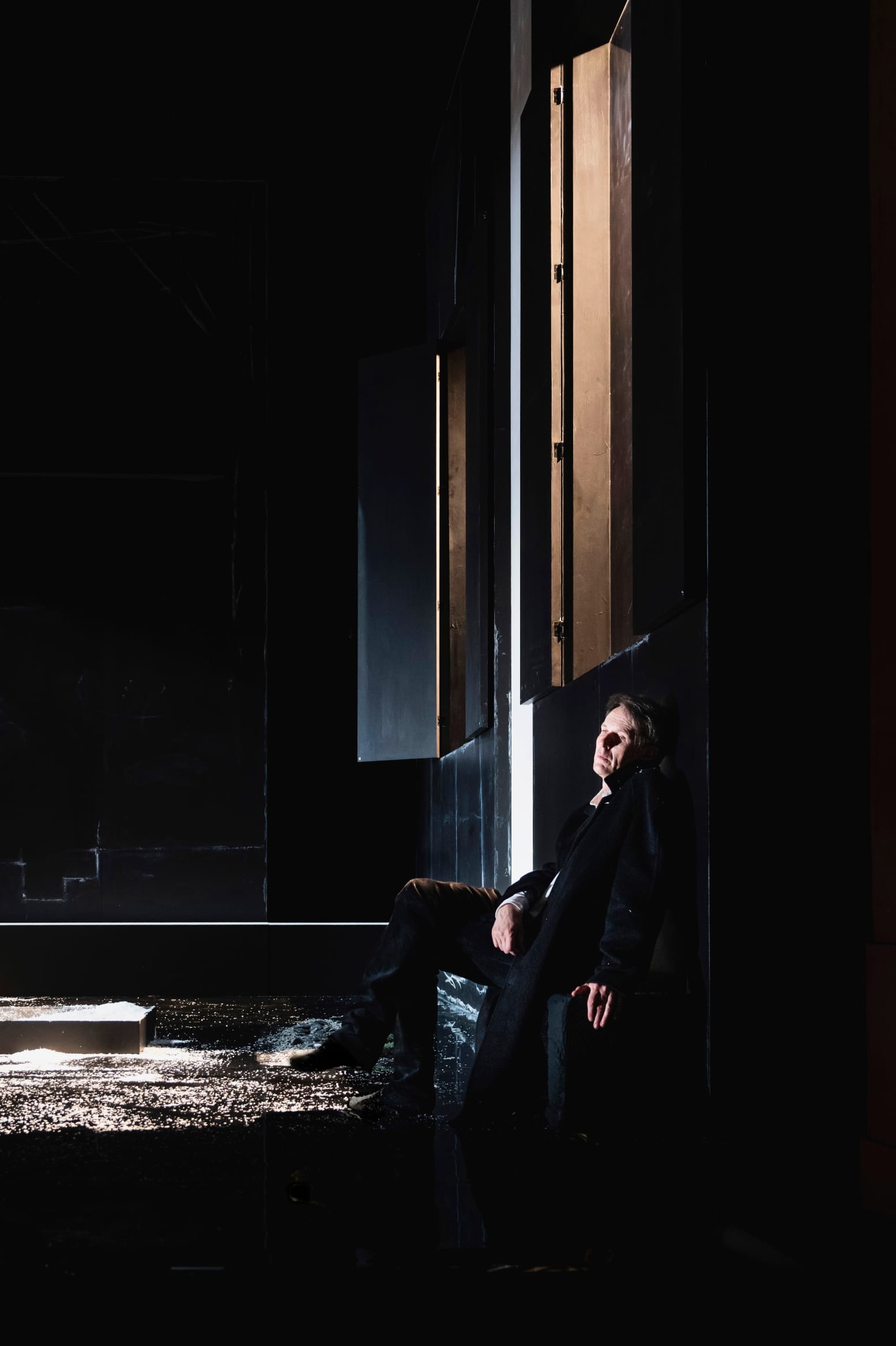 Die Stärke des Abends lag vor allem in der Lichtgestaltung des französischen Lichtdesigner Jean Kalman. Ein weißes Licht in tausend Nuancen, von einem gräulichen Nebel bis zur blendenden Klarheit der Mittagssonne auf dem Schnee. Und manchmal ein Hauch von Gelb, der die Atmosphäre erwärmt, aber immer nur aus der Ferne, denn wir wissen, dass die Atmosphäre auf der Bühne eisig bleibt: Ein Leuchten in der Mitte der Mittelwand oder die „drei Sonnen“ aus 23. „Die Nebensonnen“, deren Morgenstrahlen durch riesige Fenster in der rechten Bühnenwand fallen. Ein poetisches Licht, das die Fantasie des Publikums immer wieder beflügelt, mit einigen unvergesslichen Szenen, wie dem Hell-Dunkel-Kontrast in Bostridges Gesicht, als zwischen 5. „Der Lindenbaum“ und 6. „Wasserflut“ der Schnee fällt.