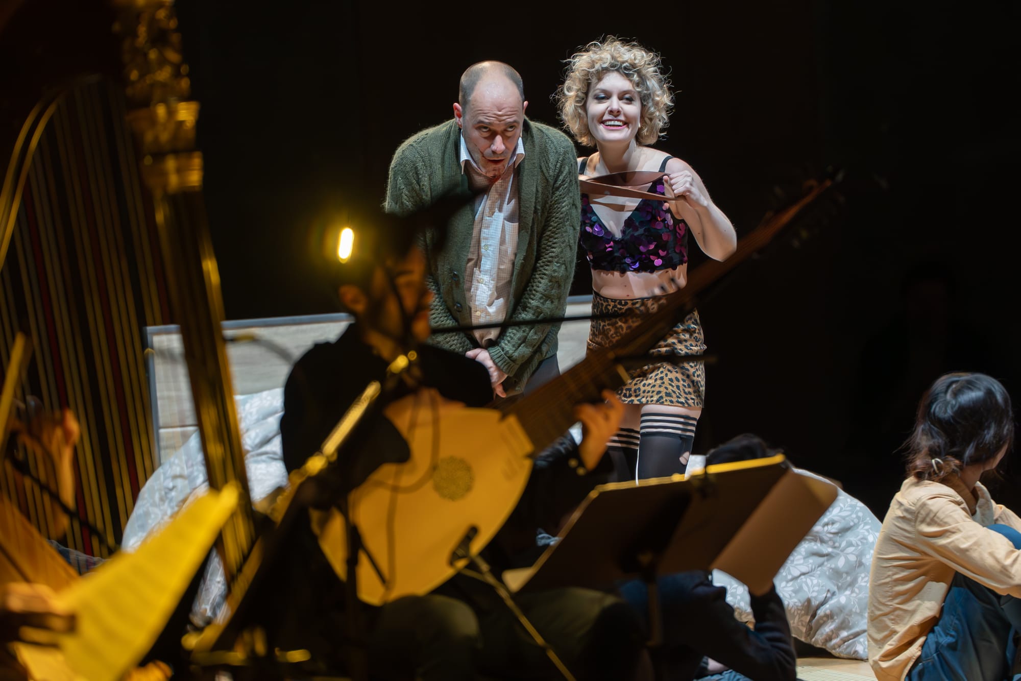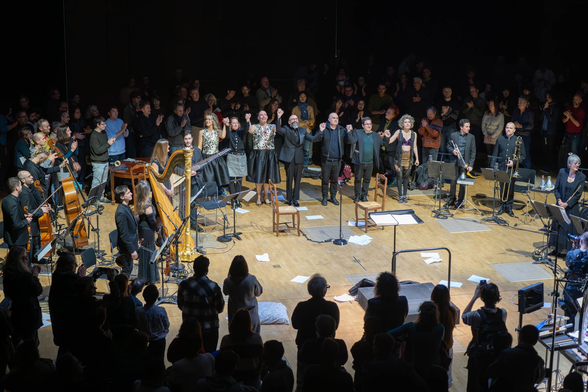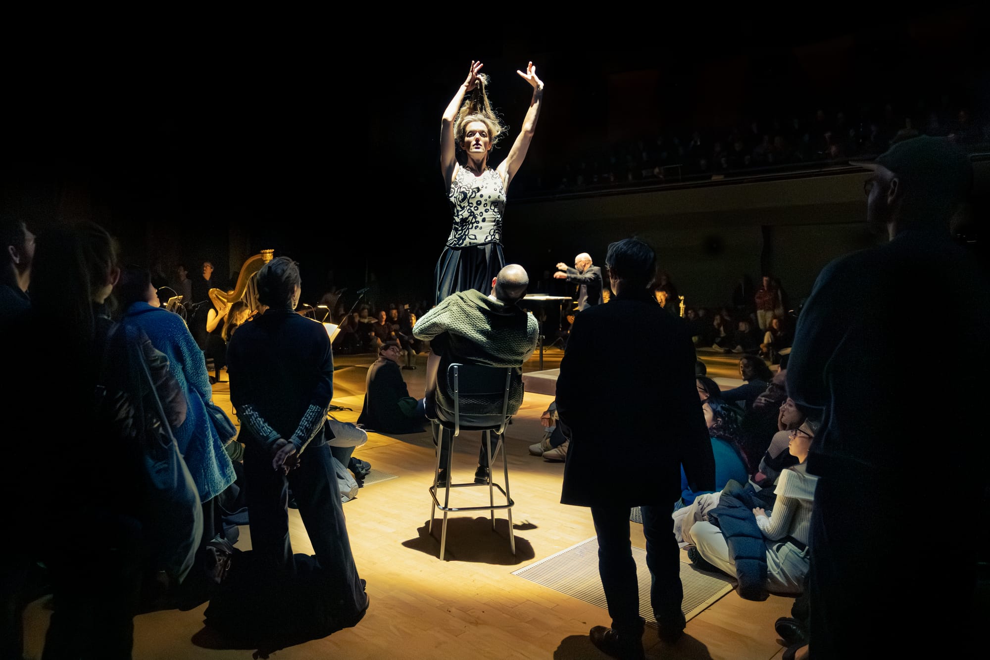 Für seine dritte EIC & Friends hat das Ensemble Intercontemporain eine der führenden Persönlichkeiten der Theater- und Opernregie eingeladen: Der spanische Regisseur Calixto Bieito! Nach Luciano Berios (1925-2003) theatralischer und virtuoser Sequenza (1958 bis 2003) am Nachmittag – wir waren nicht dabei - wechselt die Atmosphäre am Abend mit der französischen Erstaufführung von Orgia, des spanischen Komponisten Hèctor Parras (*1976) mit seiner vierten Oper, die er 2023 gemeinsam mit Bieito inszenierte. Das Werk basiert auf Pier Paolo Pasolinis (1922-1975) gleichnamigen Theaterstück. In sechs eindrucksvollen Tableaus entfaltet der Filmemacher und Dramatiker ein packendes Drama über die Machtverhältnisse innerhalb eines Paares – eine Metapher für die Dynamiken der bürgerlichen italienischen Gesellschaft der 1960er-Jahre. Ein wahrhaft kraftvolles Werk! Mitten im Geschehen platziert, hat das Publikum die Möglichkeit, sich zwischen den Musikern und den verschiedenen Schauplätzen zu bewegen und so vollständig in das Geschehen einzutauschen.