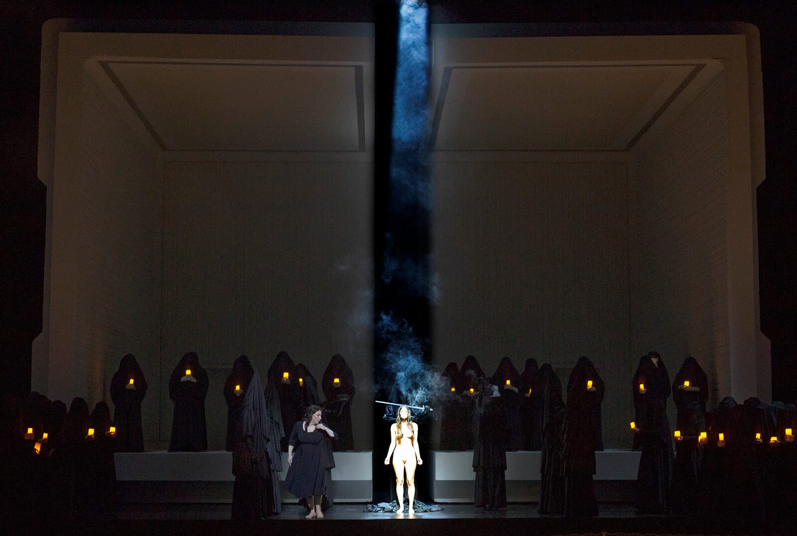 Mit ihr und den Göttern, dann in den Triumphszenen, passt der von der chinesischen Chorleiterin Ching-Lien Wu einstudierte Choeurs de l’Opéra National de Paris mühelos die Dynamik seines gemeinsamen Gesangs an, rund und perkussiv, oszilliert zwischen den Klaviernuancen religiöser Meditation und den lyrischen Schreien fanatischer Krieger.