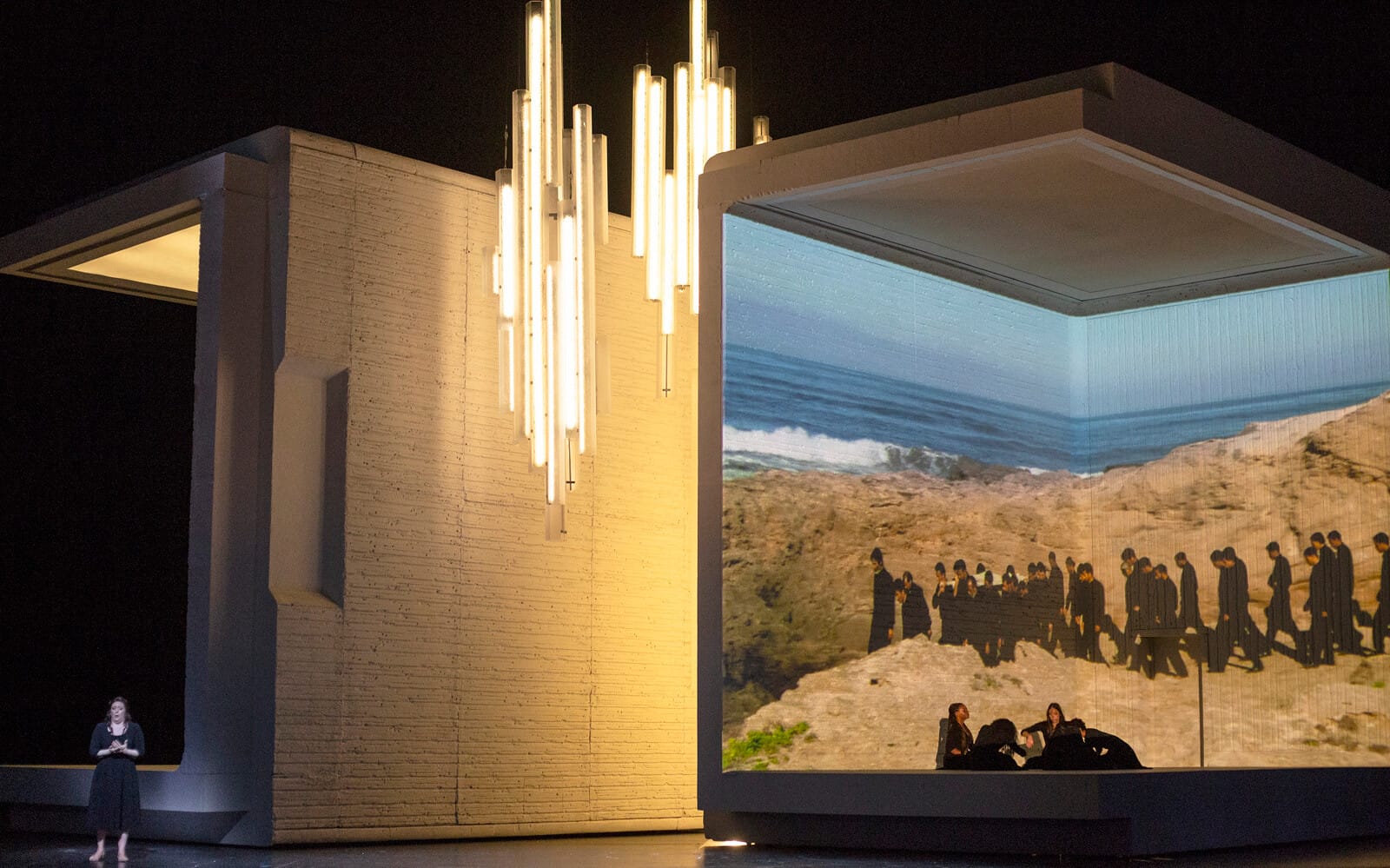 Zwischen einem monumentalen Bunker und einer geisterhaften Vision verwandelt die iranische Video-Künstlerin SHIRIN NESHAT ihre erste Opern-Inszenierung von AIDA, die 2017 bei den SALZBURGER FESTSPIELEN uraufgeführt wurde und dann in einer Koproduktion mit dem TEATRE DEL LICEU wiederaufgenommen wurde, sie transformiert die Bühne der OPERA NATIONAL DE PARIS / SALLE BASTILLE in ein ebenso intimes wie spektakuläres Fresko. Unterstützt von dem italienischen Dirigenten MICHELE MARIOTTIS mit seiner äußerst nervösen musikalischen Leitung sorgt eine Besetzung, dominiert von dem polnischen Tenor PIOTR BECZAŁA, die spanische Sopranistin SAIOA HERNÁNDEZ – die an diesem Abend von der polnisch-amerikanischen Sopranistin EWA PŁONKA ersetzt wurde – und die französisch-schweizerische Mezzo-Sopranistin EVE-MAUD HUBEAUX, an diesem Abend für eine solide und ausdrucksstarke Interpretation von VERDIS Drama…