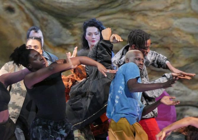 Kommen wir nun endlich zur Inszenierung. Die flexiblen Street- und Break-Tänzer des amerikanischen Tänzer und Choreografen Cal Hunt sind beindruckend und relevant, da der Tanz ein wesentlicher Bestandteil der lyrischen Tragödie ist. Sie sind jedoch weniger überraschend, da wir in Les Indes galantes ebenfalls von Rameau in der Inszenierung von Clément Cogitore schon diese teilweise verrückten Verrenkungen gesehen haben: Einige der Tänzer sind auch diesmal dieselben. Ihre Verrenkungen, manchmal fließend, manchmal ruckartig, passen nicht immer gut zur Musik und wir haben den Eindruck, dass sie – sehr gut – eine Lücke füllen, die durch die Zwecklosigkeit in der Inszenierung des amerikanischen Regisseurs Peter Sellars entstanden sind.