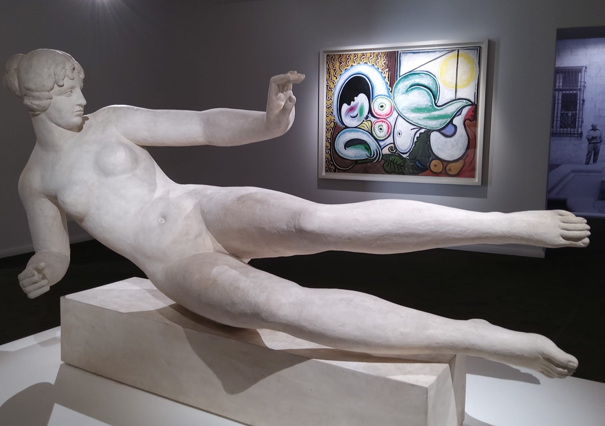 Das gemeinsam Katalanische von Aristide Maillol und Pablo Picasso wird von der Ausstellung kaum bekräftigt. Das zeigt sich deutlich am Ende des Rundgangs, an den sich Maillols „L'Air“ (Die Luft) von 1938 und Picassos „Nou couché (Nackte Schlafende) von 1922. Beide verbindet zwar deutlich der Mensch als Thema. Aber während Picasso die Form bis zur Deformation, zum Chaotischen und zur Abstraktion aufweicht, bleibt es bei „L'Air“ trotz einer für Maillol untypischen Streckung und ihrem prekären Gleichgewicht doch bei der ewig weiblichen, attributslosen Figur. Beide befragen das Menschsein, Picasso experimentell vielfältig in seiner Verletzbarkeit und Chaotik, Maillol in seiner zur edlen Einfalt gebändigten stillen Größe; das Katalanische ist sein Kostüm.
