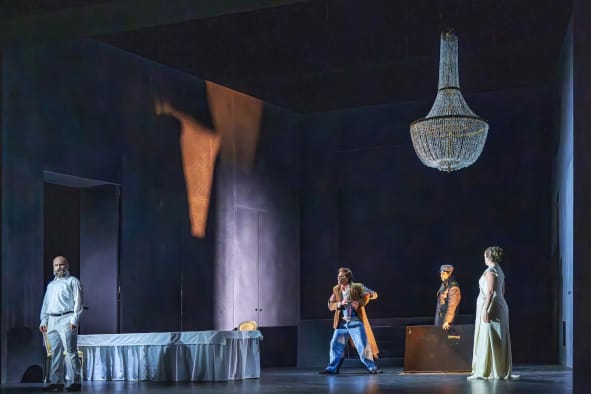 Es ist nach den sehr gelungenen Produktionen Die Schändung der Lukrezia (09/2020) und Eugen Onegin (04/2022) die dritte Regiearbeit des Regisseurs Christian Poewe am Volkstheater Rostock, der, wie damals schon, in enger Zusammenarbeit mit Ausstatterin Wiebke Horn in schlichten, aber wirksamen Bühnenbildern ein beglückendes Opernerlebnis schafft.