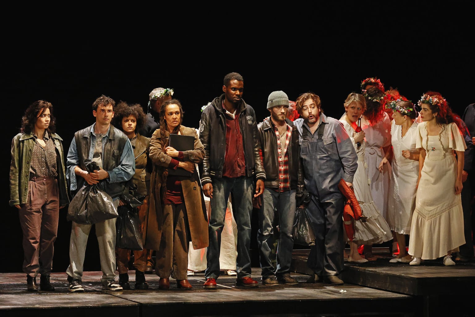 Indem Signeyroles Inszenierung die Wanderung des Holländers mit vergangenen und gegenwärtigen Migrationen verknüpft. Dies offenbart, dass Wagner, weit davon entfernt, sich nur auf die Romantik zu beschränken, bereits den Platz des „Fremden“ im Allgemeinen und den Preis Erlösung hinterfragt. Das Publikum entdeckt eine Oper, in der das Meer nicht bloß Klangkulisse, sondern auch politischer Raum ist! Die Legende wird zum Spiegel und der Holländer: Symbol der Menschheit auf der Suche nach Willkommen, setzt er seine ewige Suche nach einem sicheren Hafen fort…