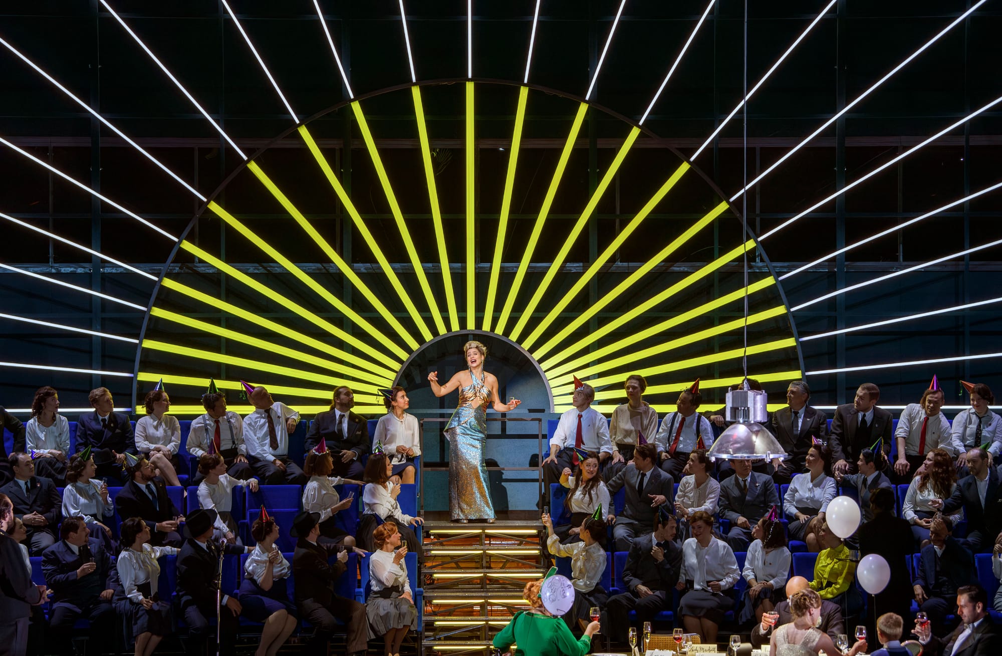Irgendwo zwischen Liebenden, Komplizen und Instrument der Lady Macbeth steht an ihrer Seite der Namensgeber des Werks. Stimmlich und darstellerisch ebenfalls exzellent überzeugte hier der Bariton Vladislav Sulimsky. Das auf faszinierende Weise einnehmende Timbre und die präzise Phrasierung zogen sich als stimmliche Konstante seiner Darbietung durch den Abend. Komplex und intensiv verkörperte Sulimsky dabei die existenzielle Zerrissenheit zwischen gestalterischer Autonomie und Fremdbestimmung, zwischen individueller Machtgier und Instrumentalisierung durch böse Kräfte. So füllte sein Macbeth im einen Moment noch souverän die Machtfülle des neuen Herrschers aus – triumphal mit der Stimmgewalt der Konzertvereinigung Wiener Staatsopernchor unter der Leitung von Alan Woodbridge unterlegt –, um im nächsten wie von Sinnen auf einen Ballon einzustechen. Auch an dieser Stelle wurde der inszenatorische Detailreichtum dieser Interpretation deutlich. Weiterer elementarer Bestandsteil der Trias im zerstörerischen Kampf um Macht ist Banco, in dessen Rolle der Bassist Tareq Nazmi eindringlich und nuanciert überzeugte. Ferner setzte sich das erwartbar hohe Niveau der Besetzung bei Charles Castronovo als Macduff, Natalia Gavrilan als Kammerfrau und den anderen Sängerinnen und Sängern fort.